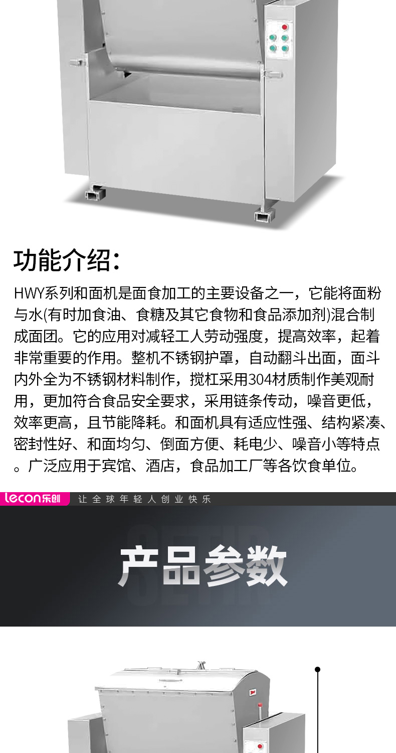 乐创(lecon)商用和面机 饭店食堂揉面搅面自动和面机 100KG/次 LC-J-HW100/台 不锈钢色