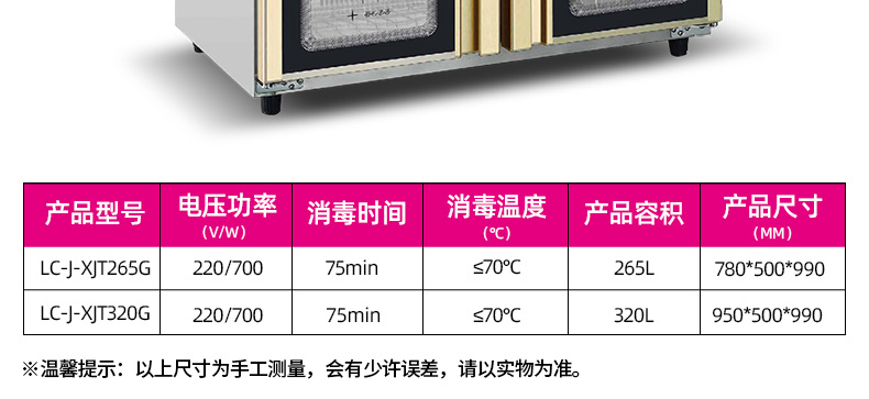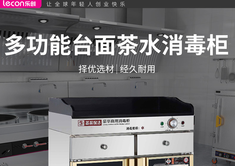 乐创(lecon)商用消毒柜 多功能台面带抽屉茶水柜 265L机械款 LC-J-XJT265G 不锈钢色