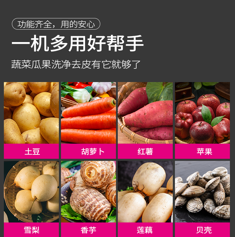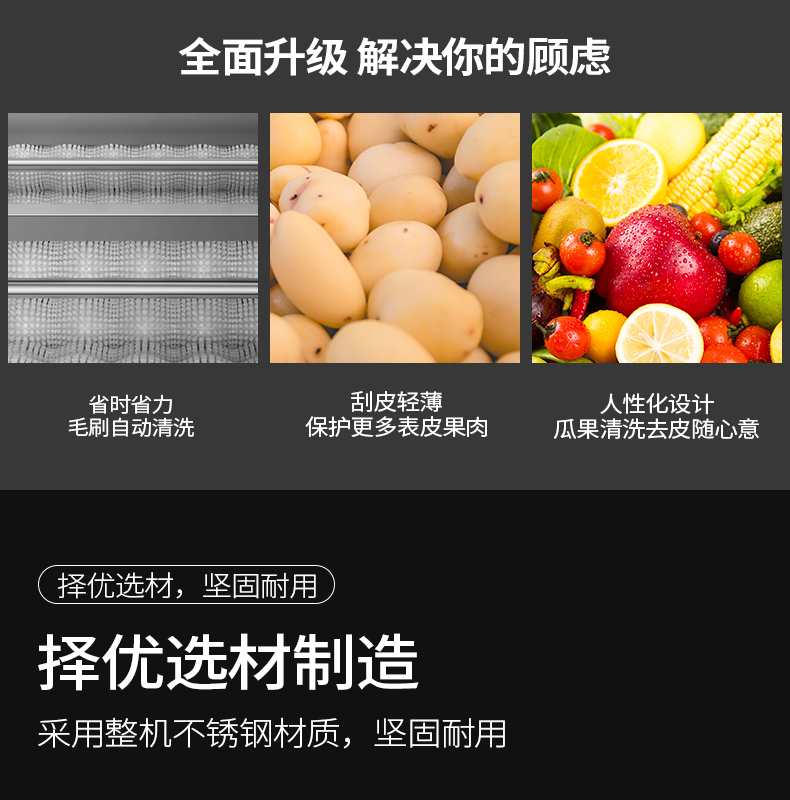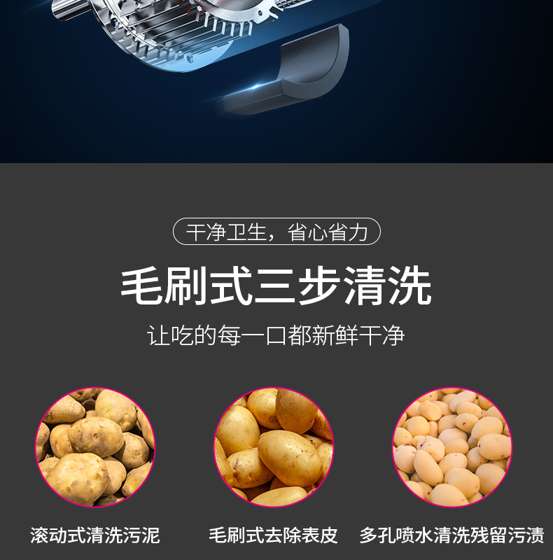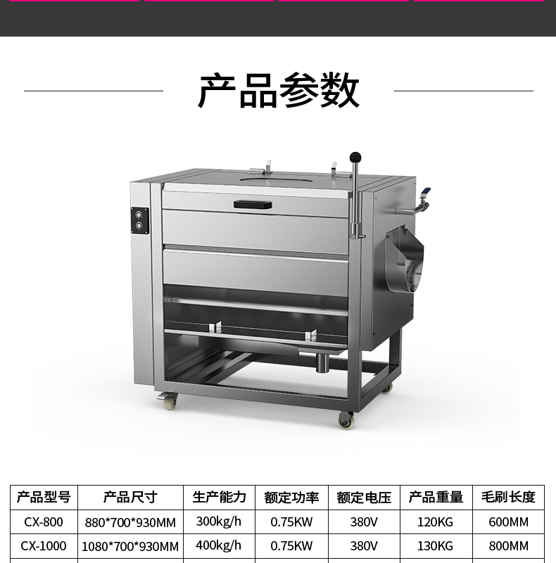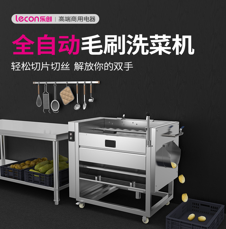乐创(lecon)毛刷清洗去皮机 商用饭店食堂土豆地瓜剥皮机 300kg/h LC-J-CX800 银色