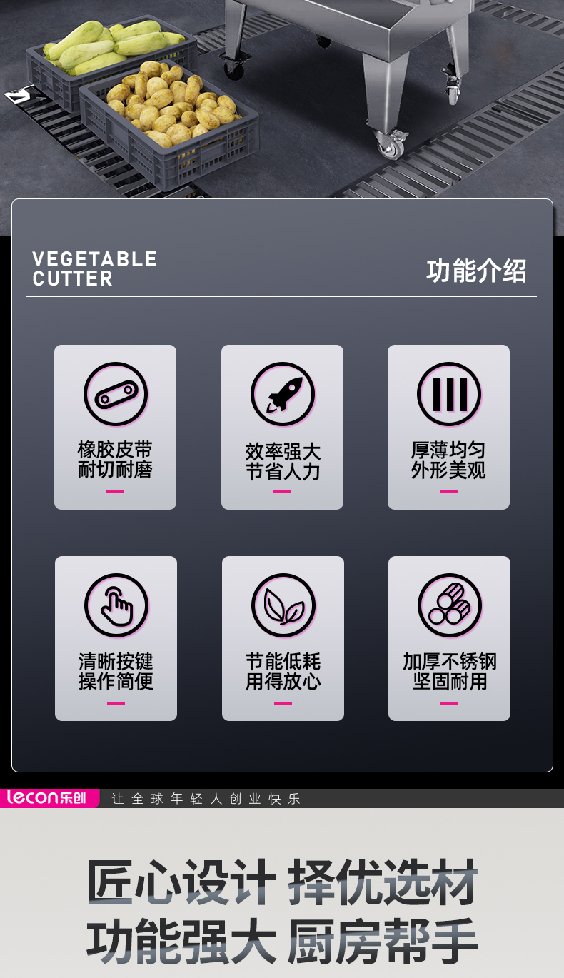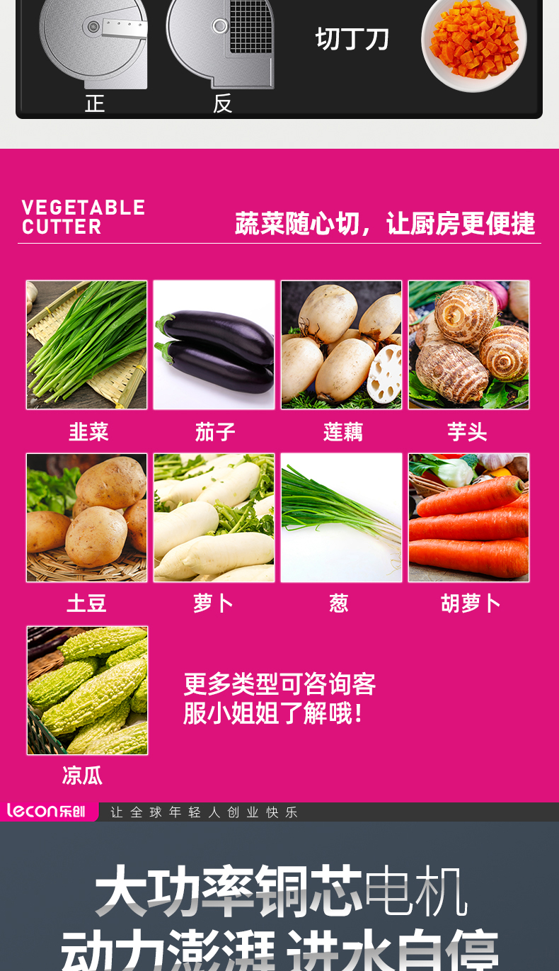 乐创(lecon)商用多功能切菜机 500-1800kg/h LC-J-G118(单位:台) 银色