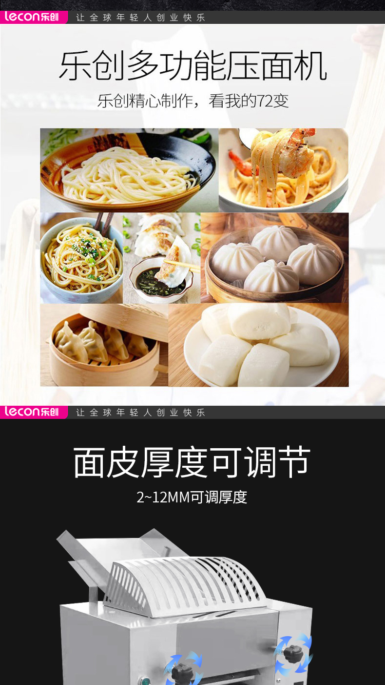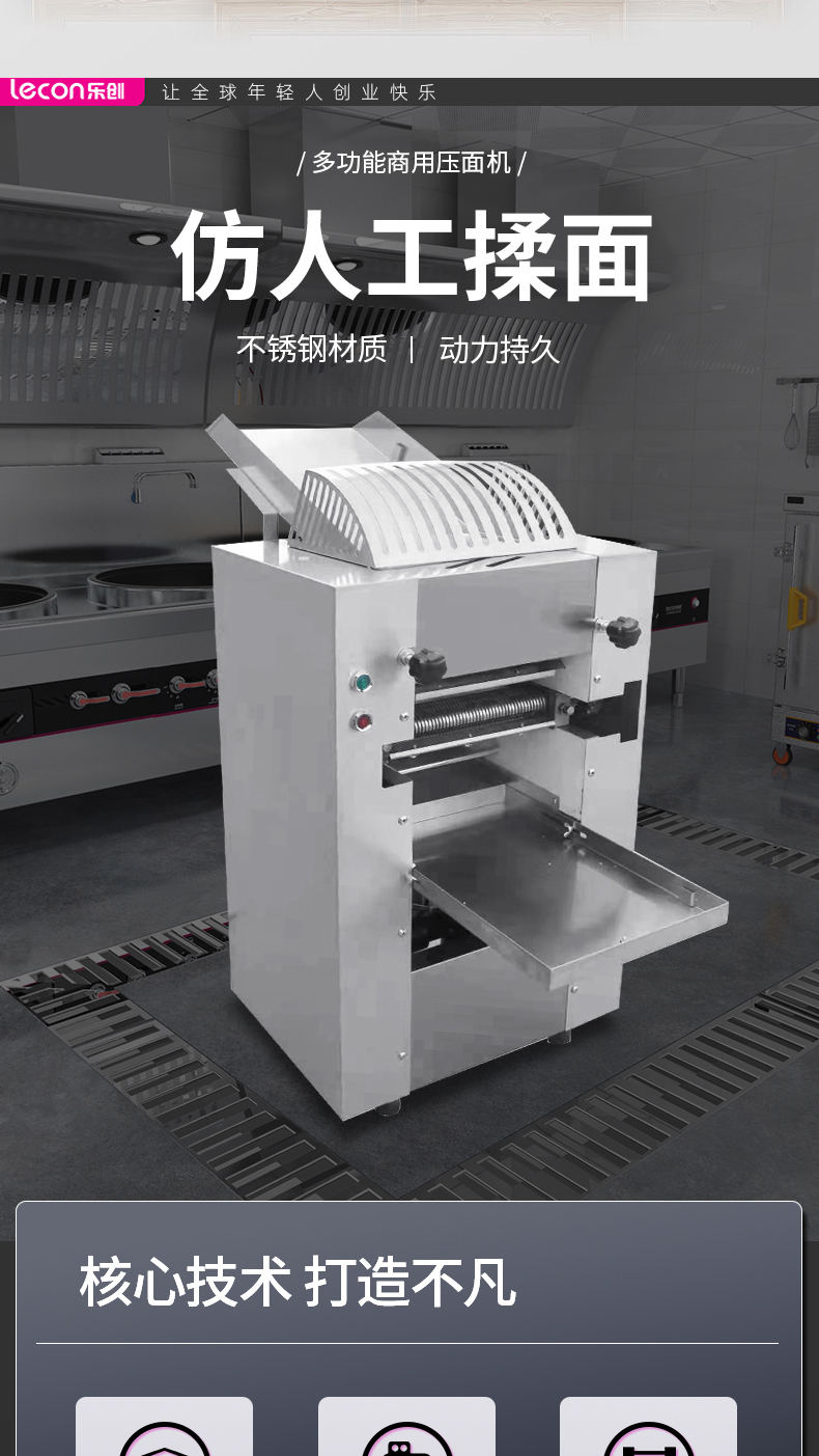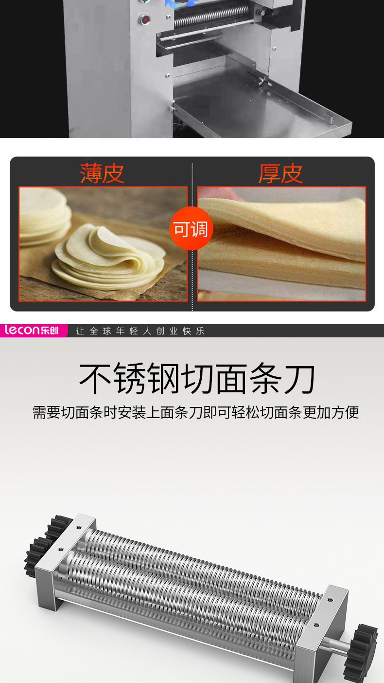 乐创(lecon)商用压面机 不锈钢擀面皮机转速39R/MIN LC-J-YMT50(单位:台) 银色