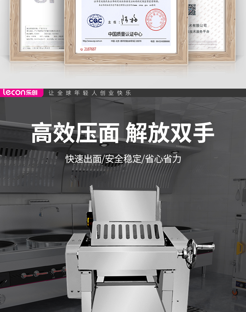 乐创(lecon)商用压面机 压面条机低噪压面机 300kg/h LC-GYM-130(单位:台) 银色
