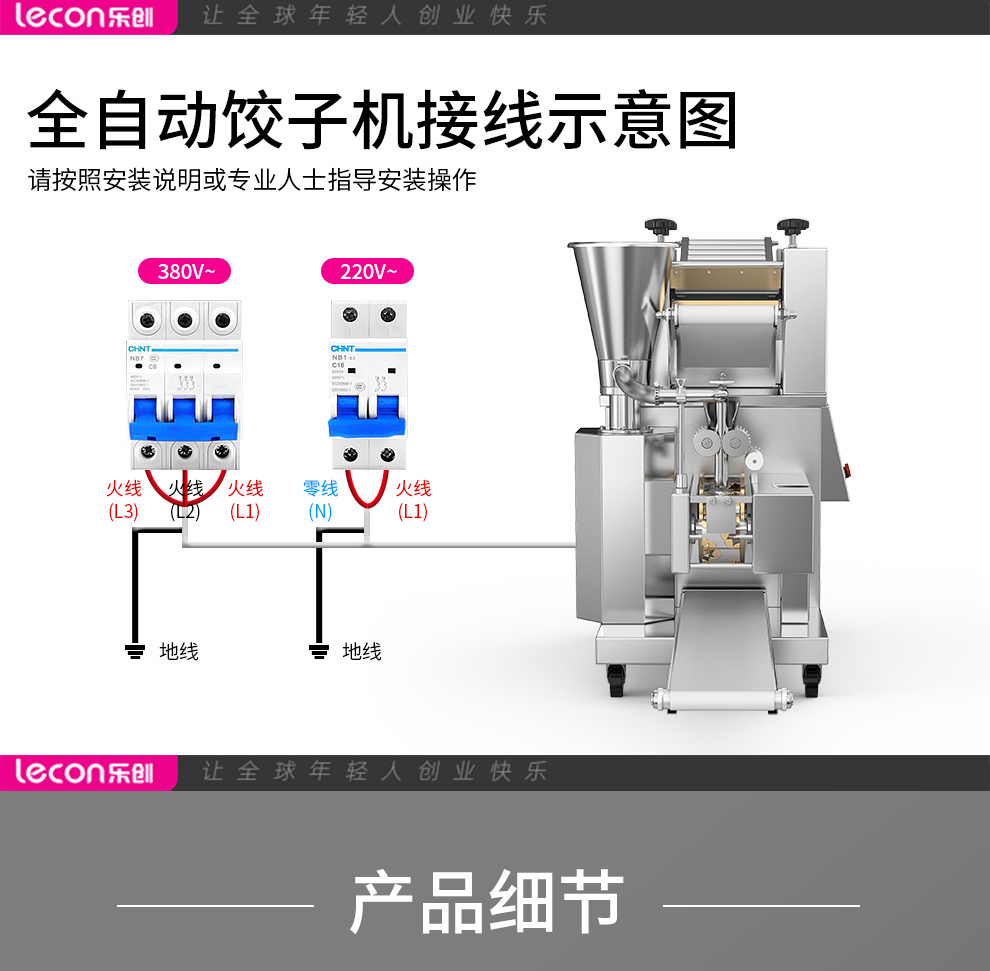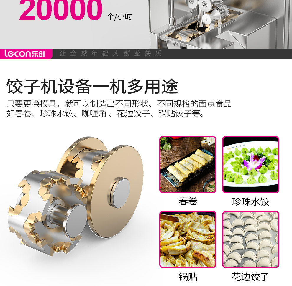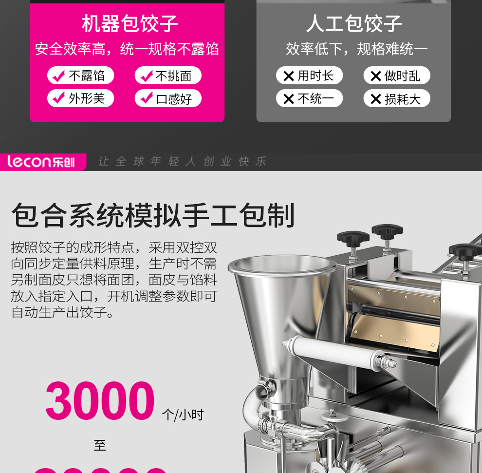 乐创(lecon)商用饺子机 水饺机3000-7000个/h LC-J-SJ130(单位:台) 银色