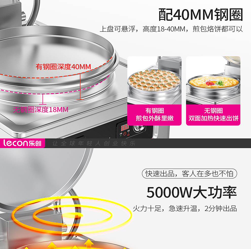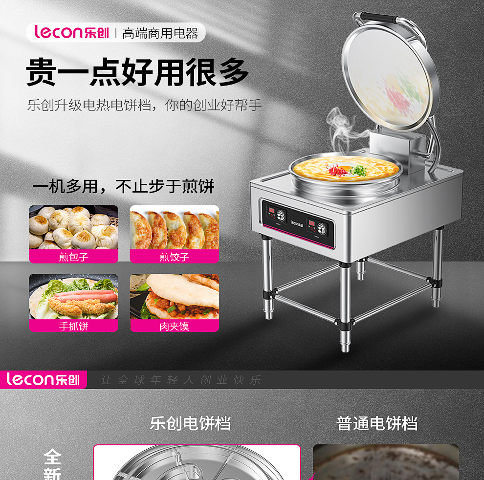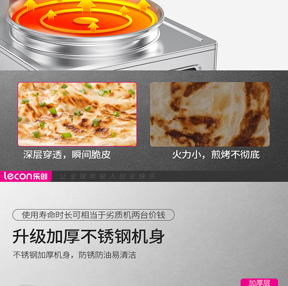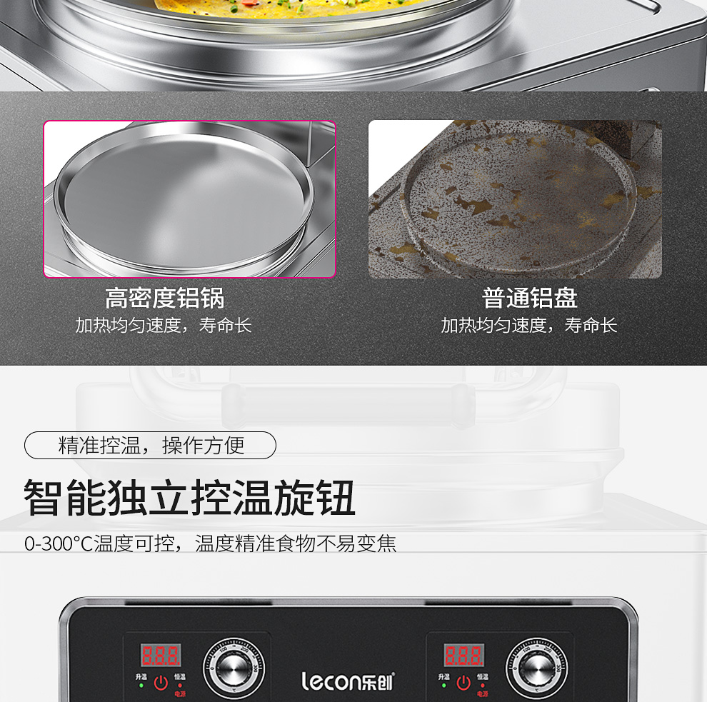 乐创(lecon)商用电饼铛 立式双面煎饼锅电煎锅电烤饼机 立式悬浮式380V YCD-45A型 银色