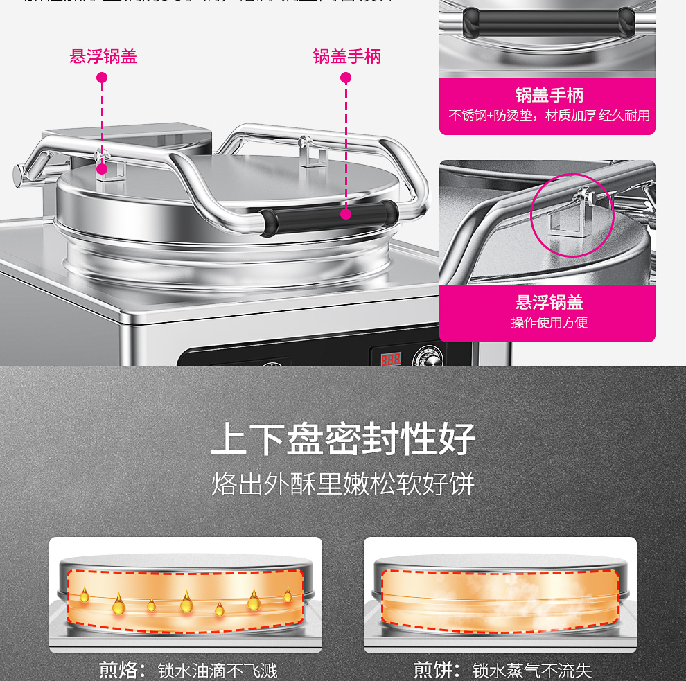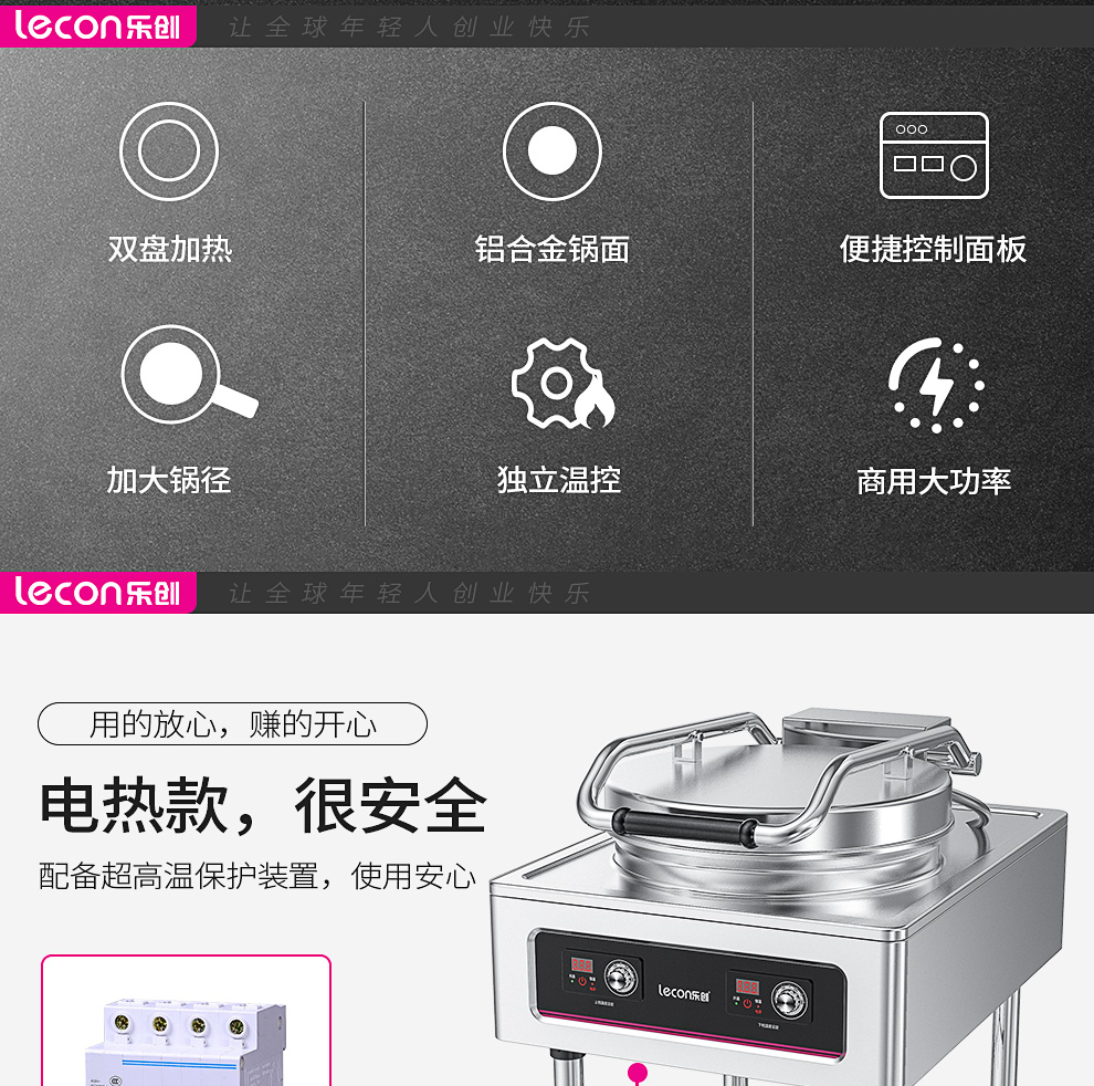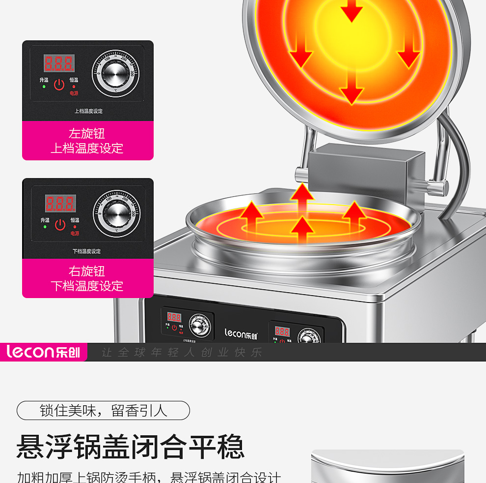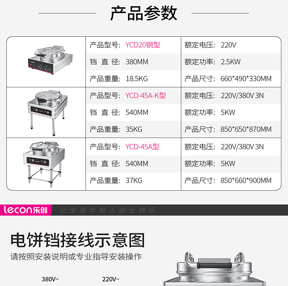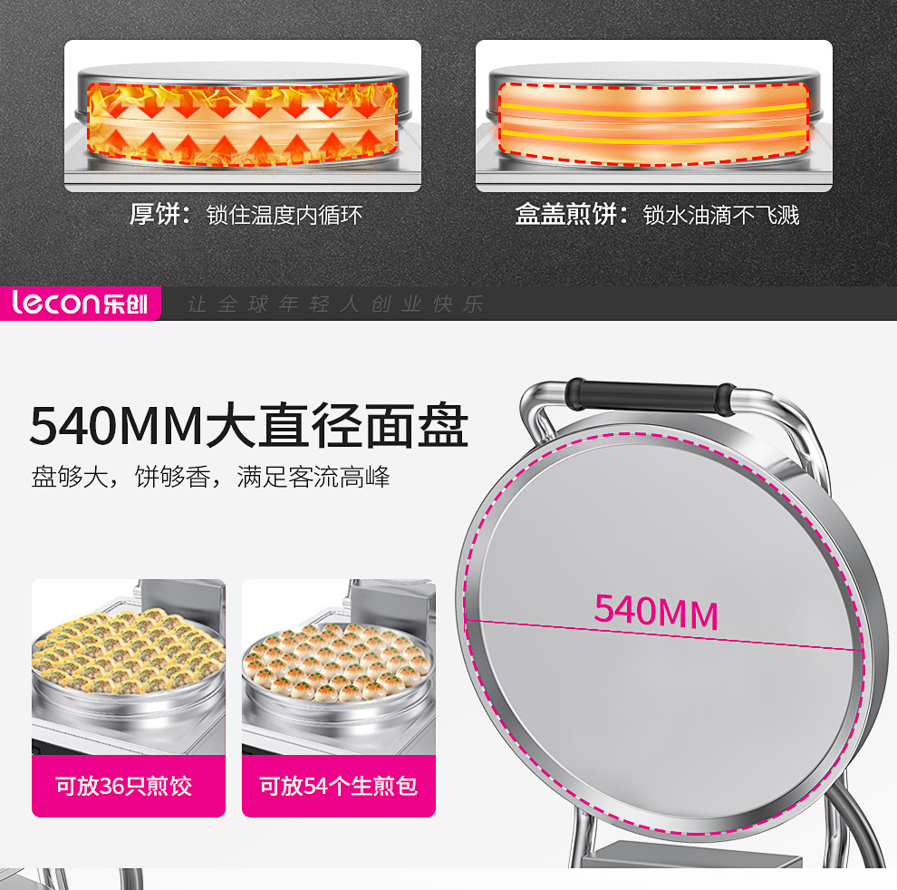 乐创(lecon)商用电饼铛 立式双面煎饼锅电煎锅电烤饼机 立式悬浮式380V YCD-45A型 银色