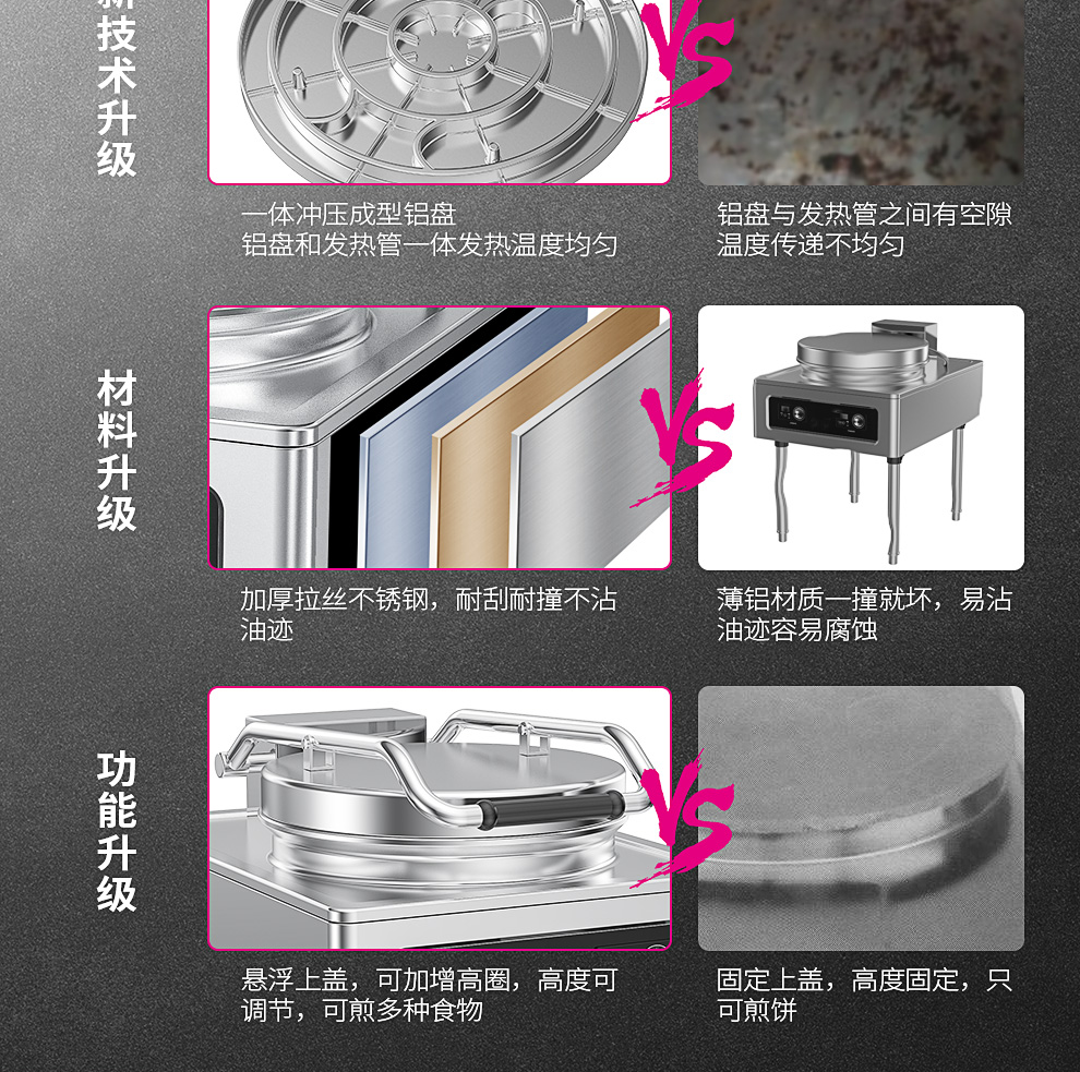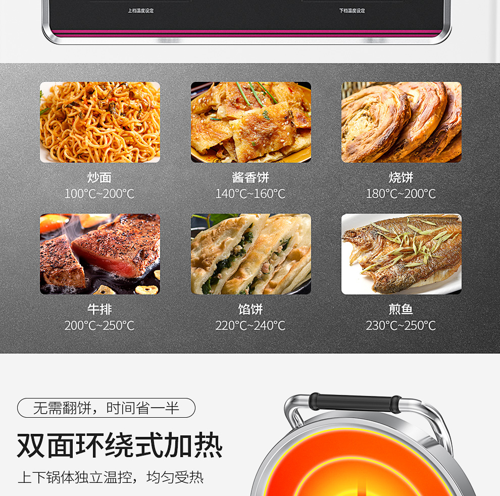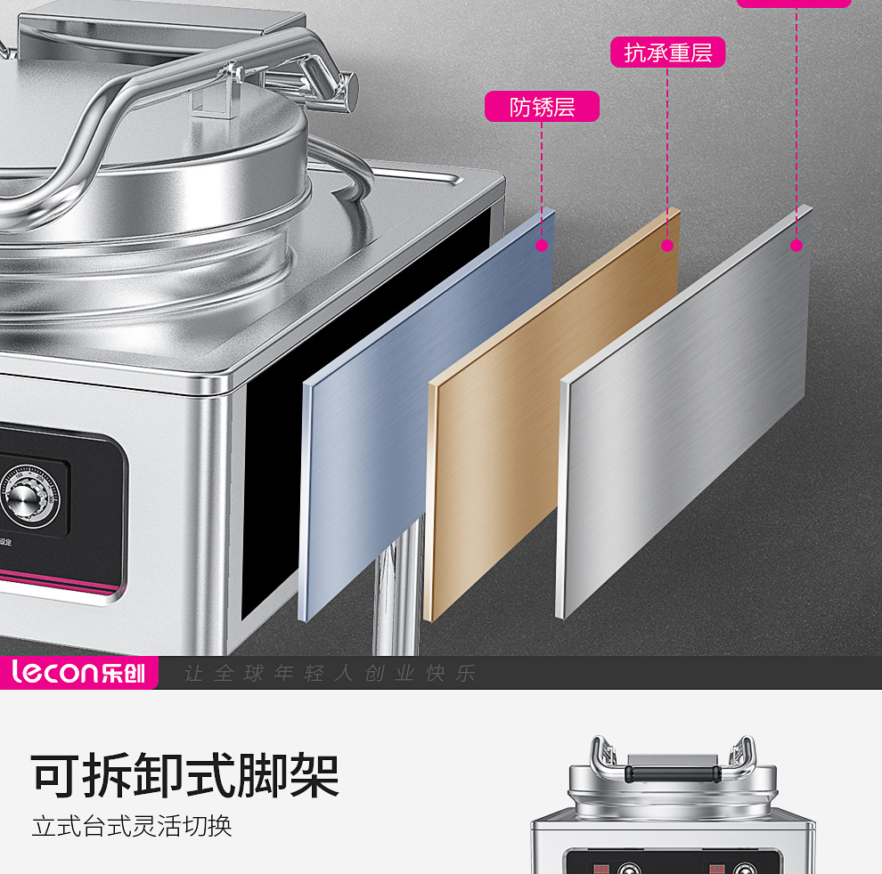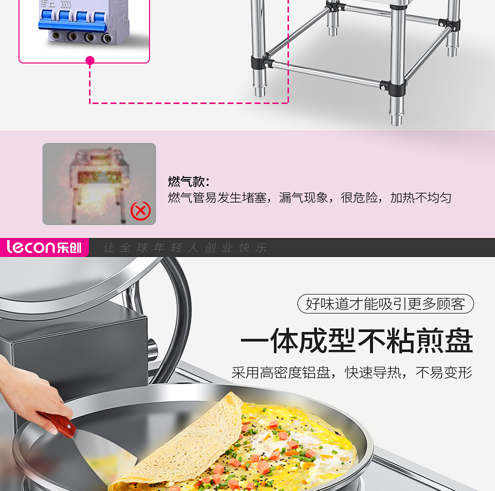 乐创(lecon)商用电饼铛 立式双面煎饼锅电煎锅电烤饼机 立式悬浮式380V YCD-45A型 银色