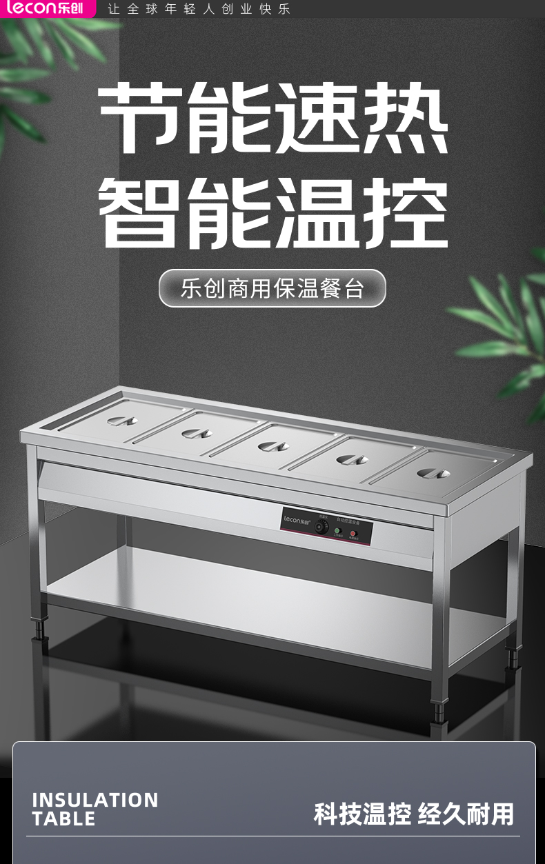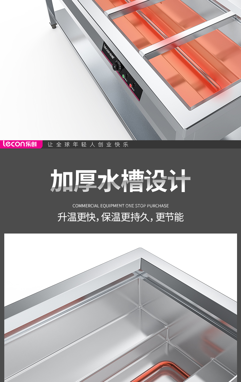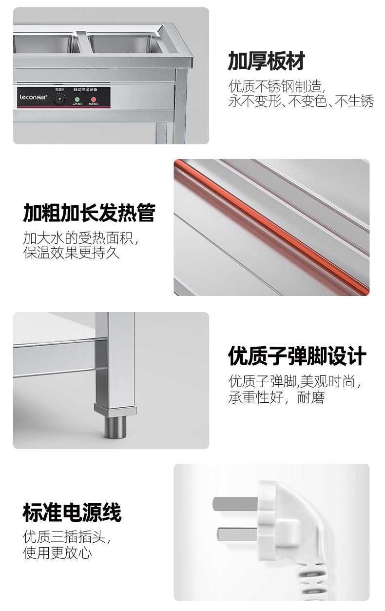 乐创(lecon)商用保温售饭台 6格不锈钢快餐保温台食堂售饭台 LC-J-SCT06 银色