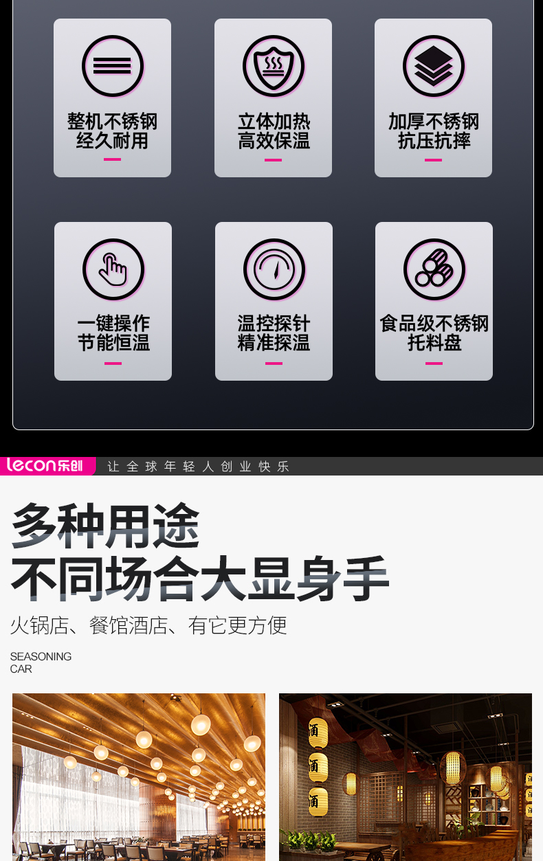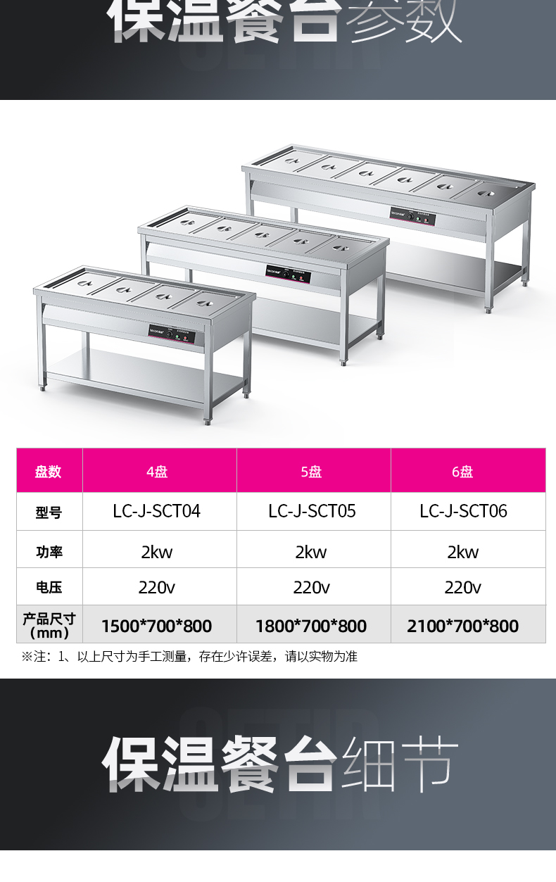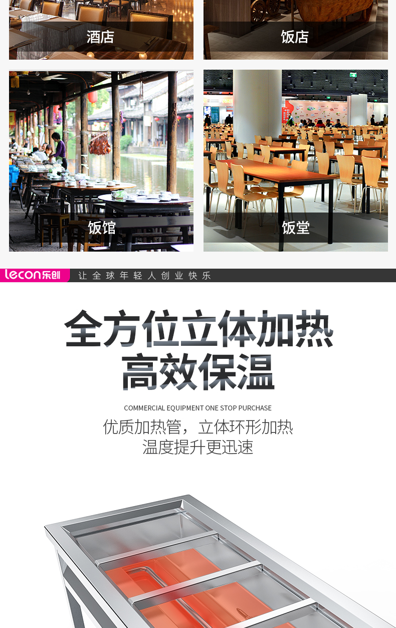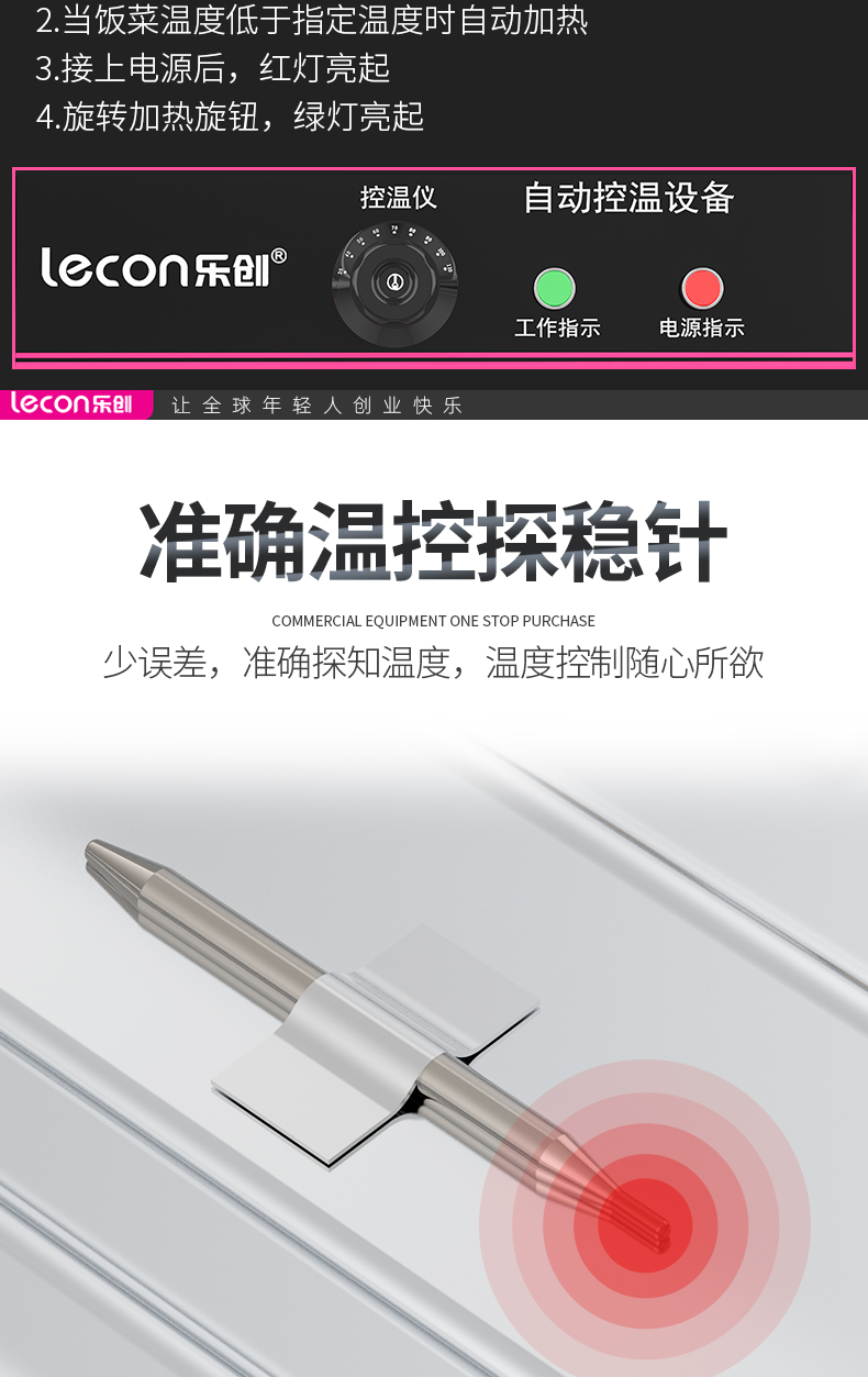 乐创(lecon)商用保温售饭台 6格不锈钢快餐保温台食堂售饭台 LC-J-SCT06 银色