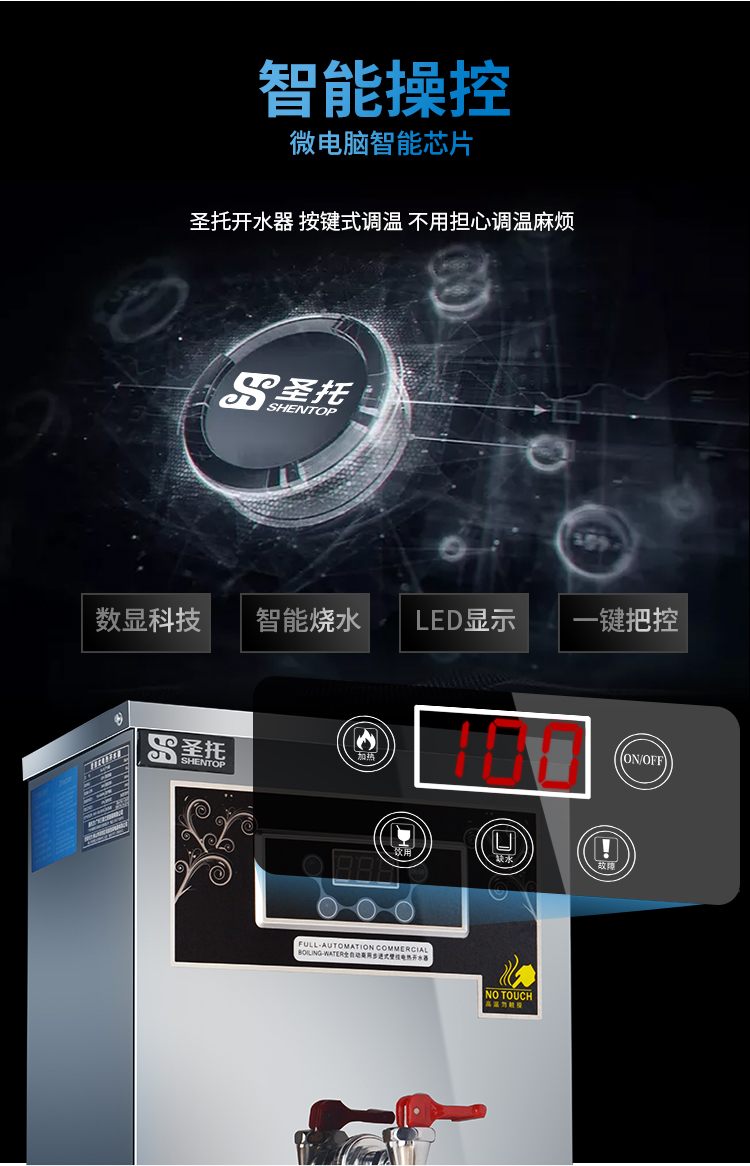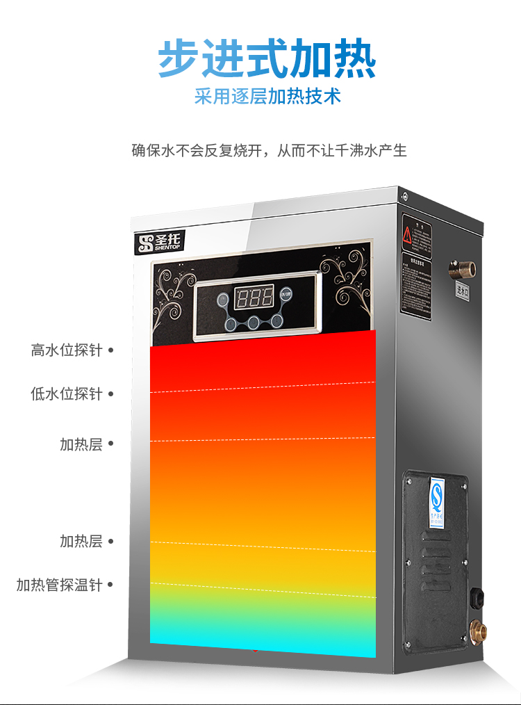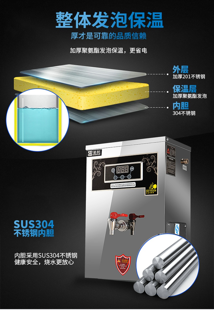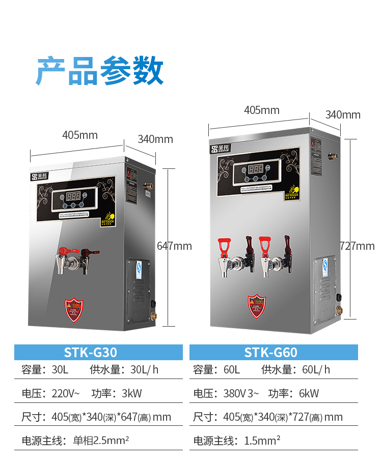 圣托(Shentop)步进式开水器 商用开水机 餐厅用烧水器 饭店煮水桶饮水机 壁挂式热水机 STK-G30 不锈钢色
