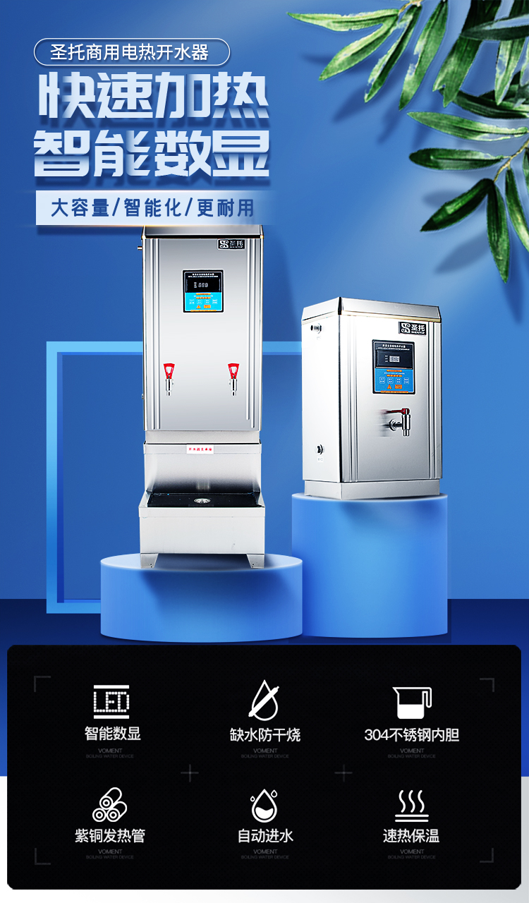 圣托(Shentop)大容量电热开水器 商用开水机全自动进水 酒店饭店餐厅厨房大型开水炉 STK-M90 不锈钢色
