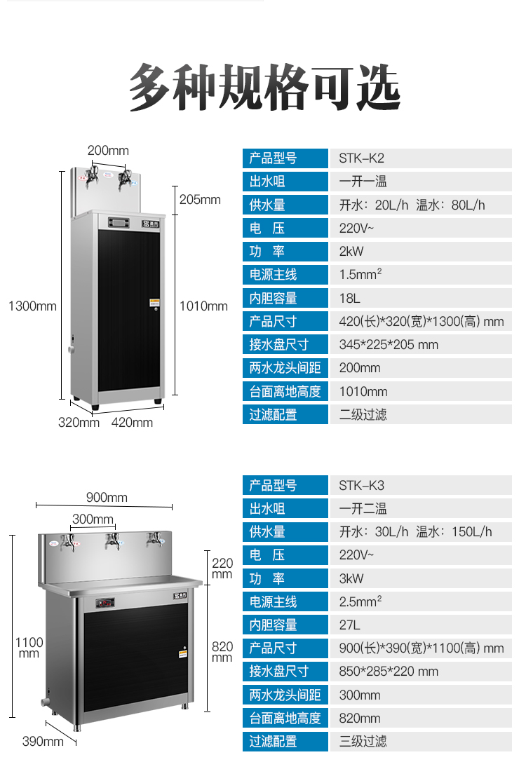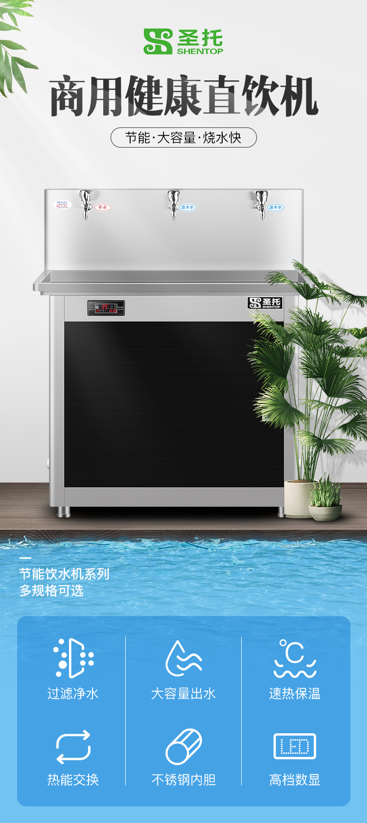 圣托(Shentop)电热开水器商用 不锈钢开水机 学校直饮水机 医院烧水器 一开一温饮水机 STK-K2 不锈钢色