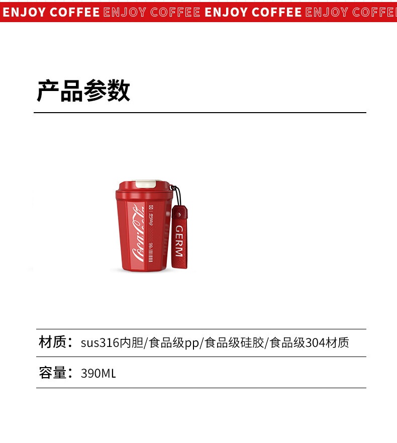 GERM可口可乐联名款菱形咖啡杯红390ml GPS-2124VP-CCR 红色