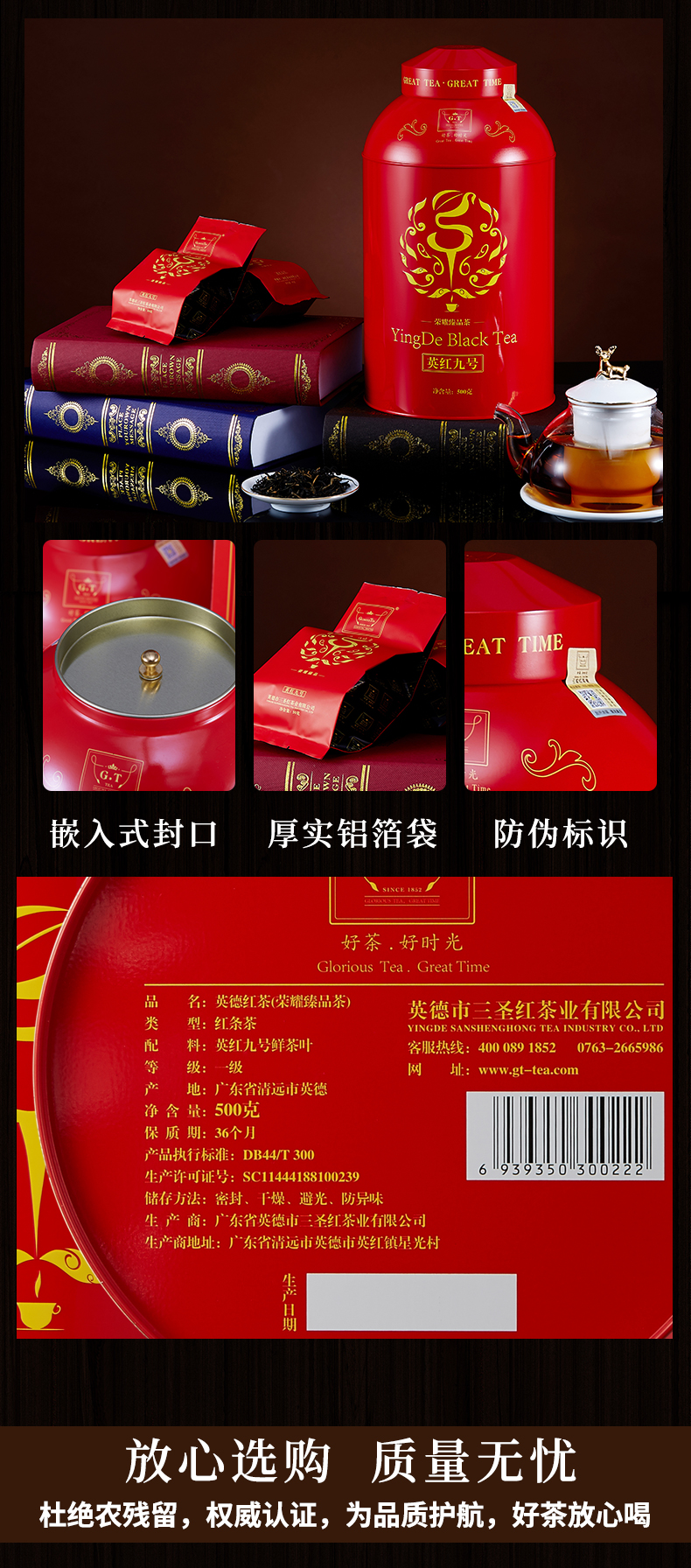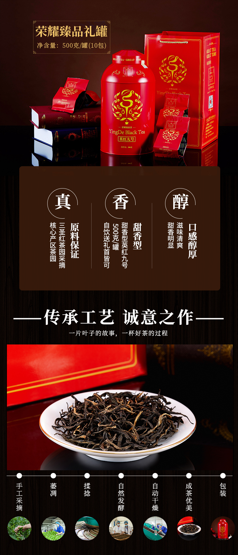 三圣红荣耀臻品(英红九号)【一芽二叶】500克/罐(50g*10包) 500g/罐