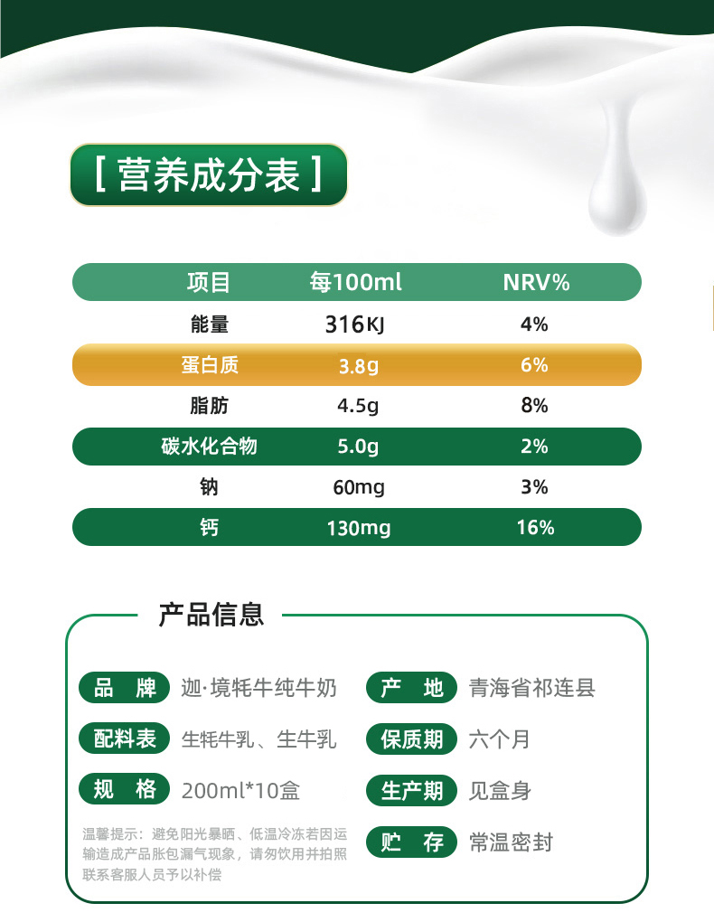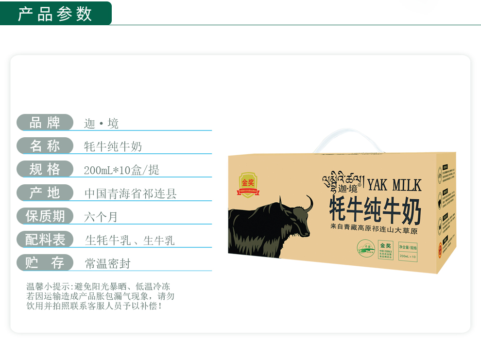 迦境牦牛纯牛奶200ML*10(单位:箱) 自然色 200ml