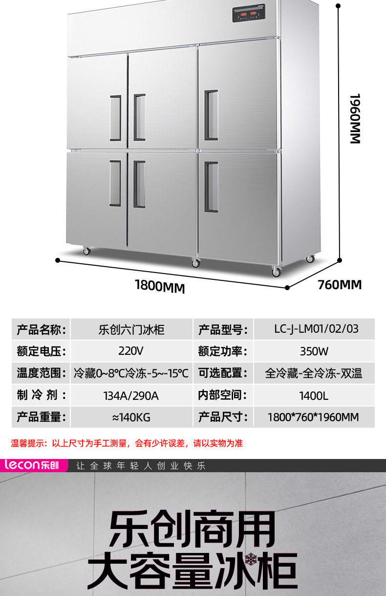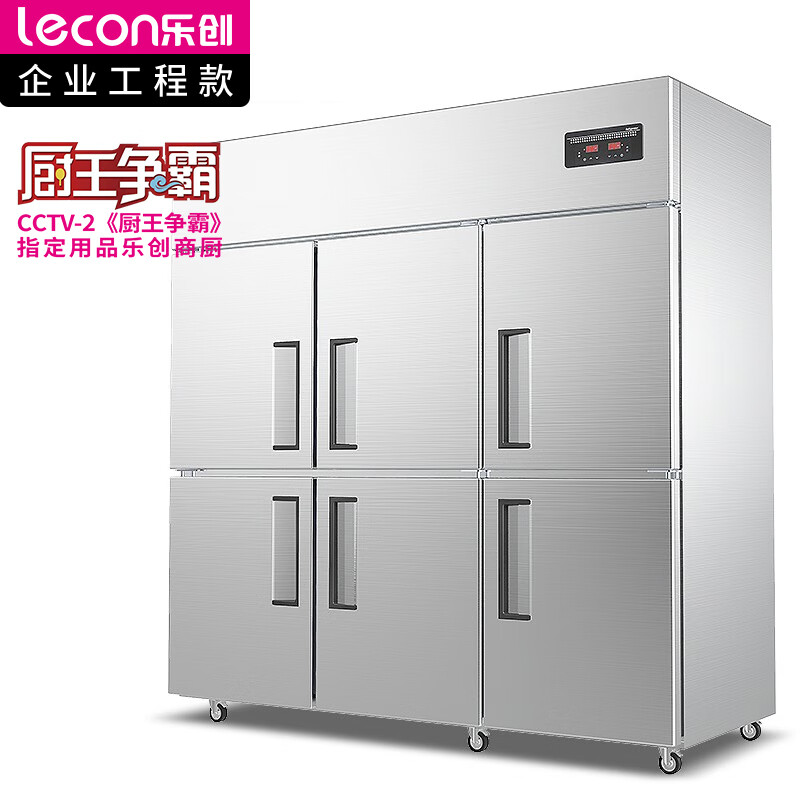 乐创 (lecon)商用六门冰柜 立式厨房髙身雪冷藏冷冻保鲜高柜 双压缩机冰箱 全冷藏【工程款】LC-J-LM01 银色