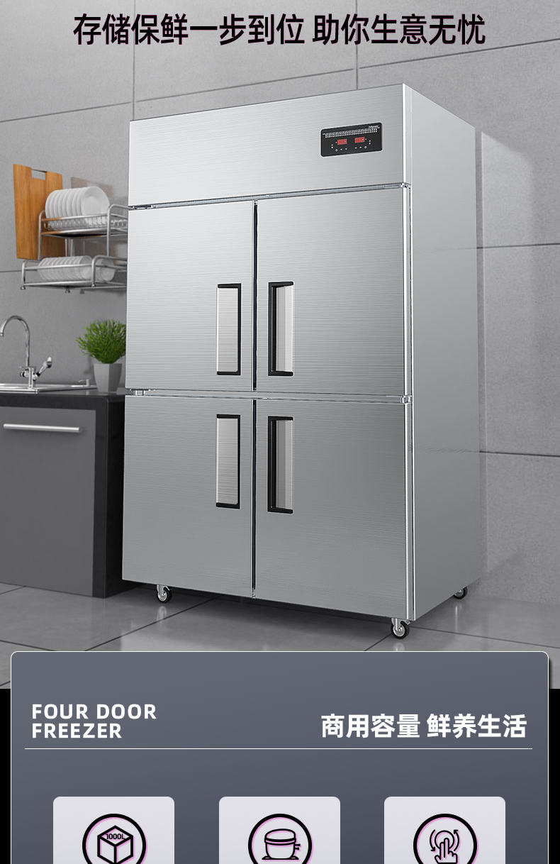 乐创 (lecon)商用四门冰柜 立式厨房髙身雪冷藏冷冻保鲜高柜 双压缩机冰箱 双温【工程款】LC-J-SM03 银色