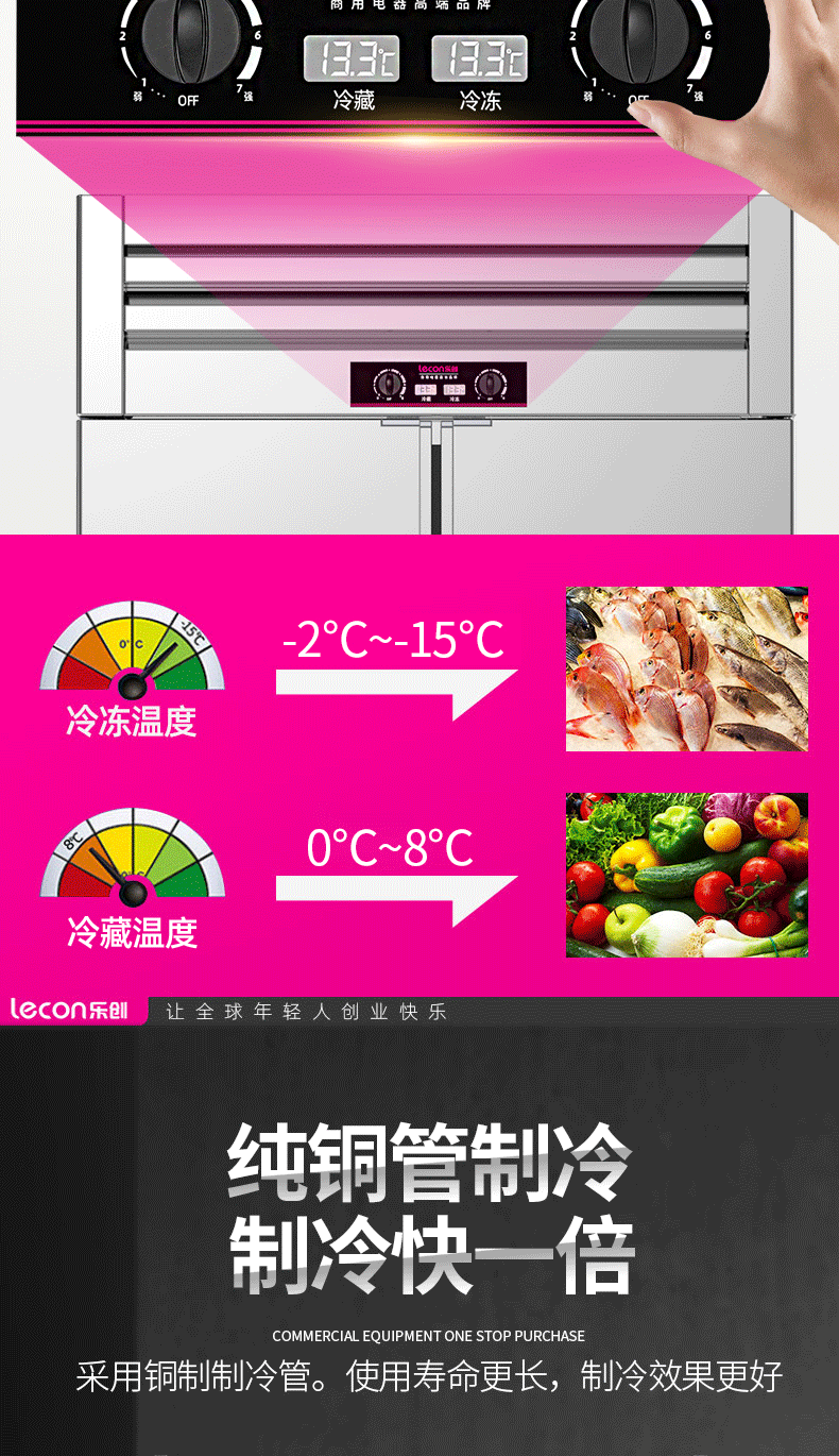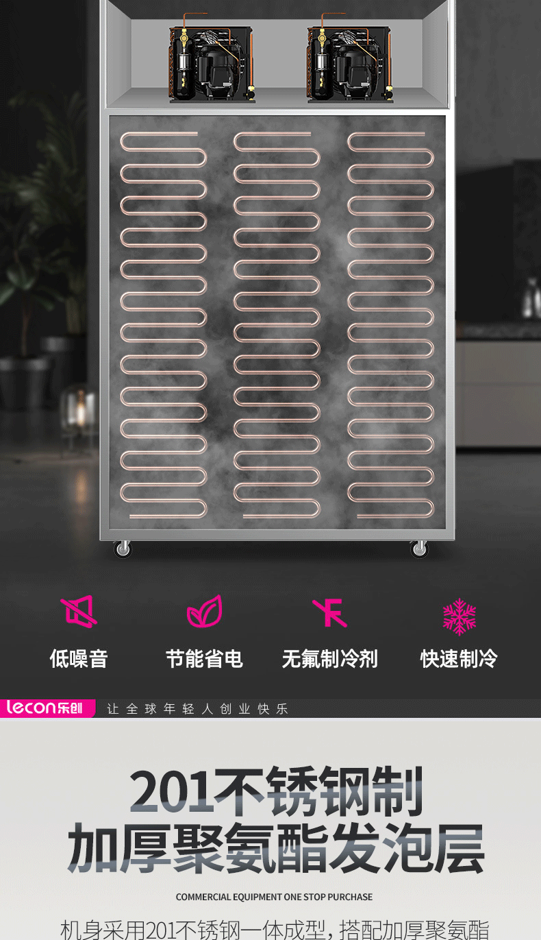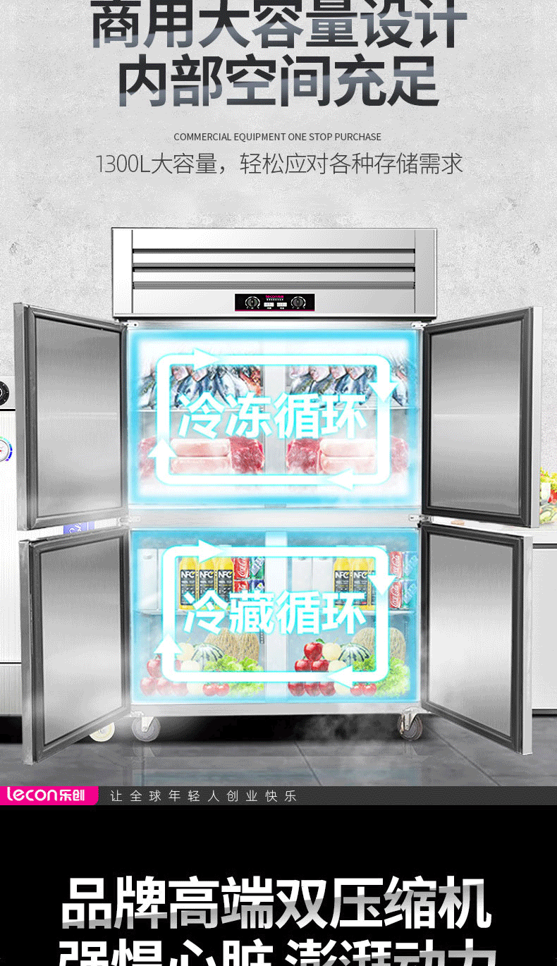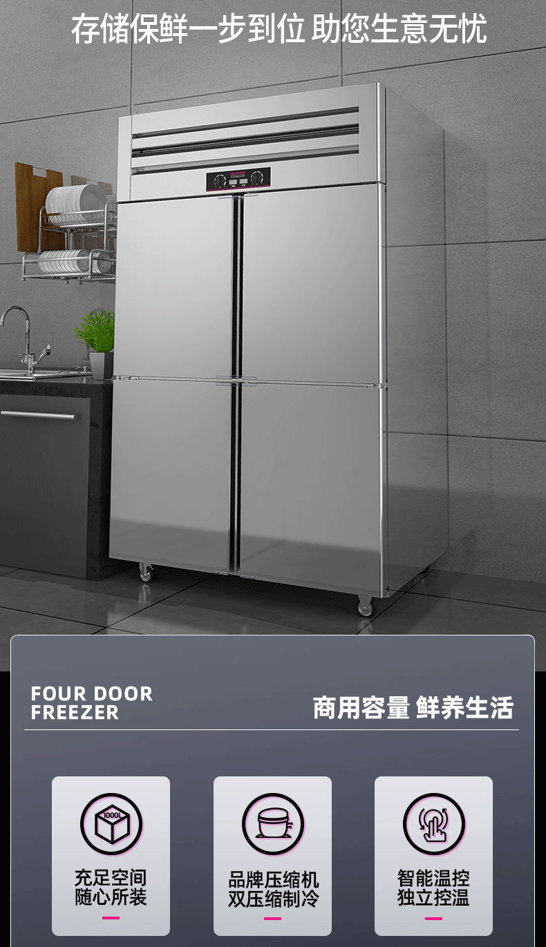 乐创(lecon)商用四门冰柜 立式厨房保鲜柜节能压缩机 工程豪华款全冷冻 LC-J-SMG01 银色