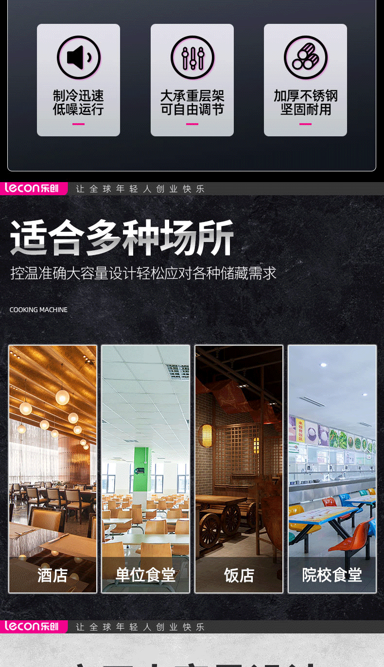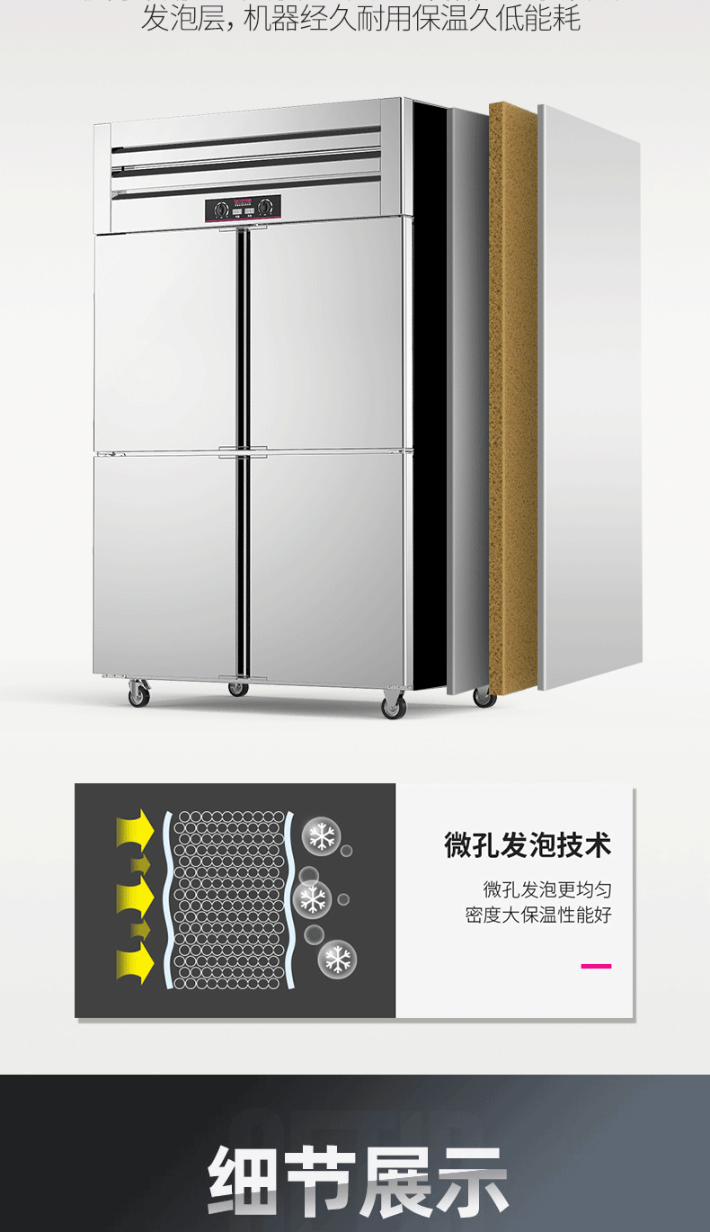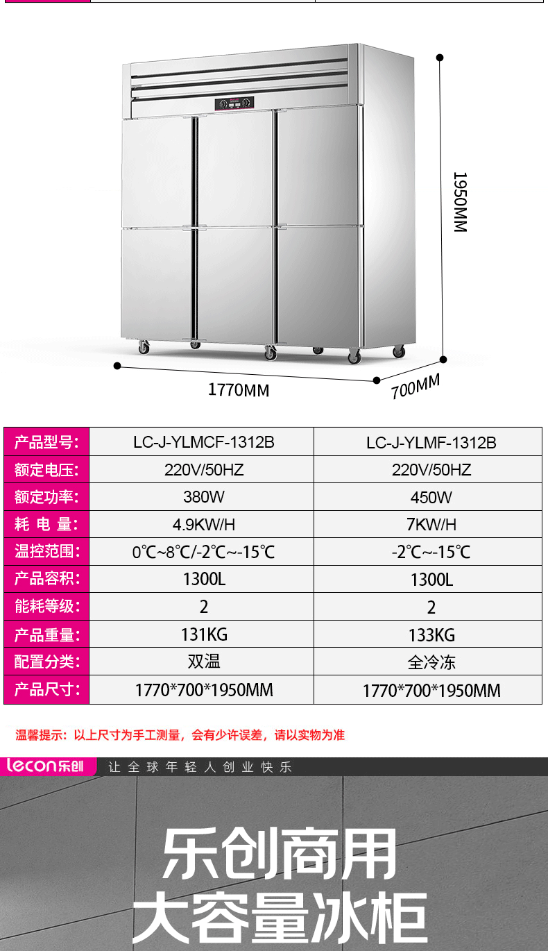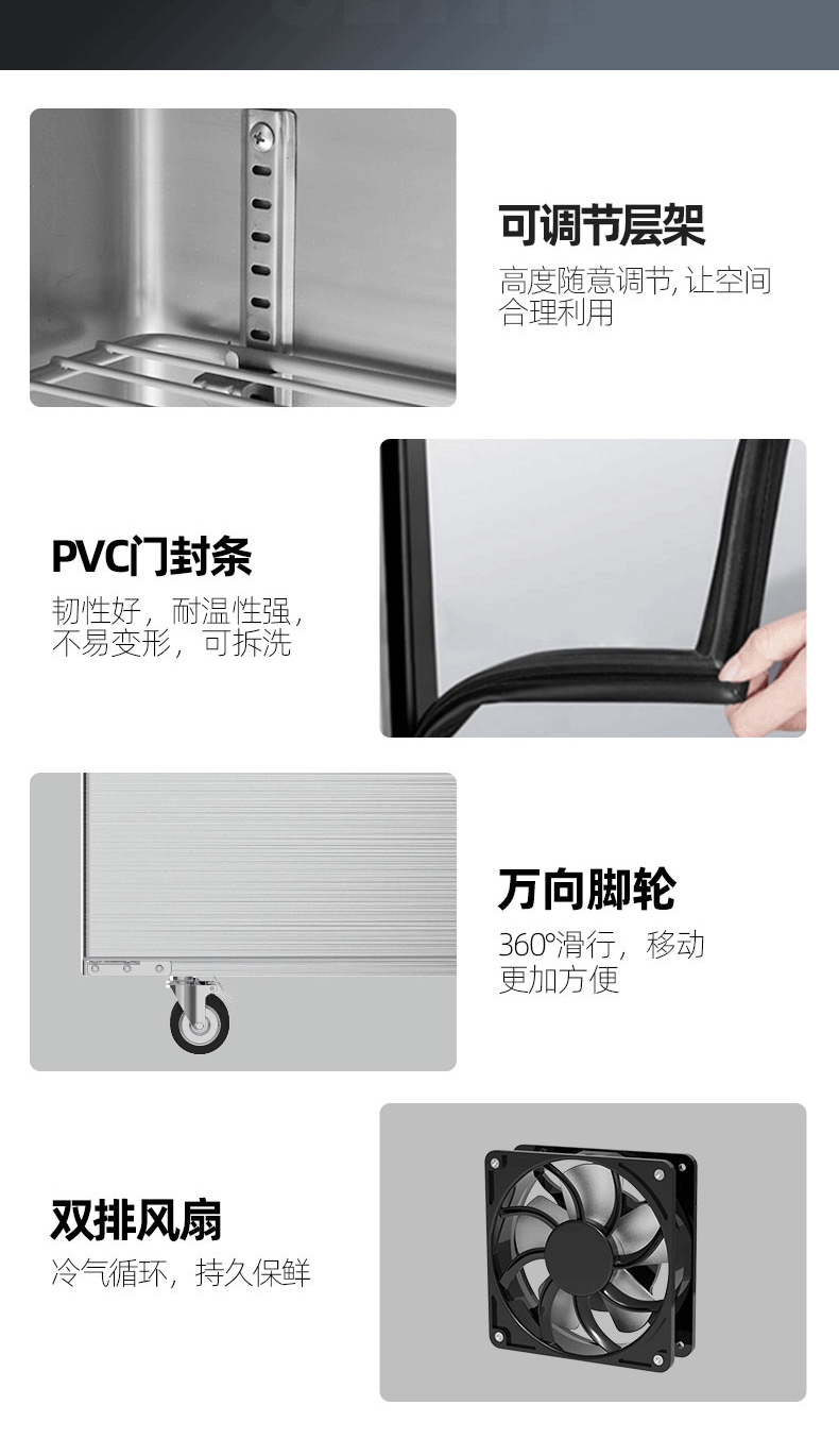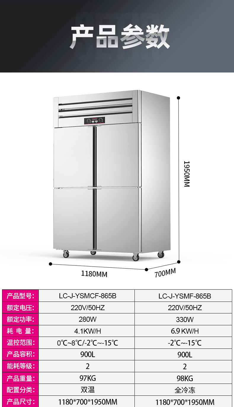 乐创(lecon)商用四门冰柜 立式厨房保鲜柜节能压缩机 工程豪华款全冷冻 LC-J-SMG01 银色