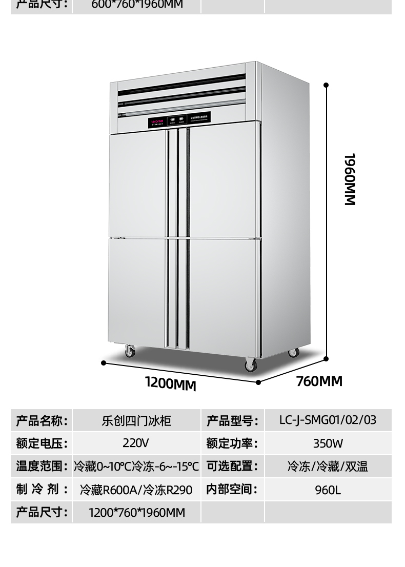 乐创(lecon)商用六门冰柜 立式厨房保鲜柜节能压缩机 工程豪华款双温 LC-J-LMG03 银色