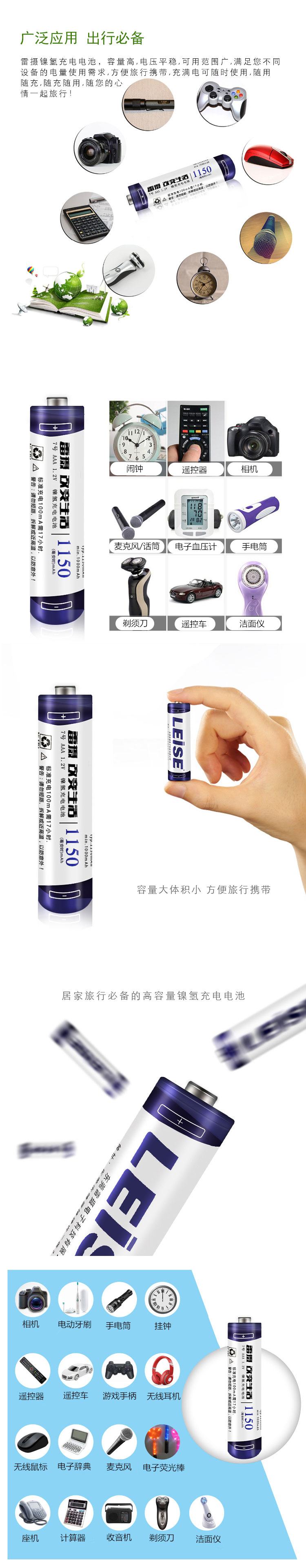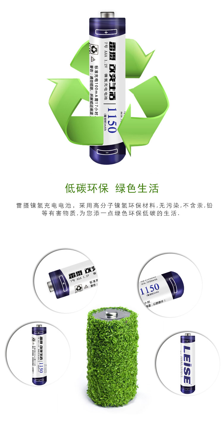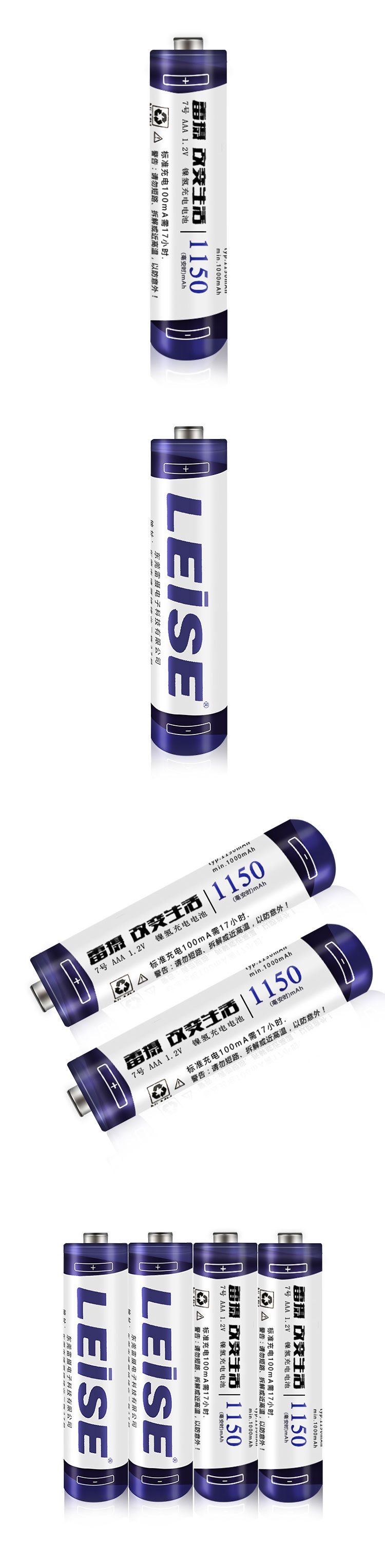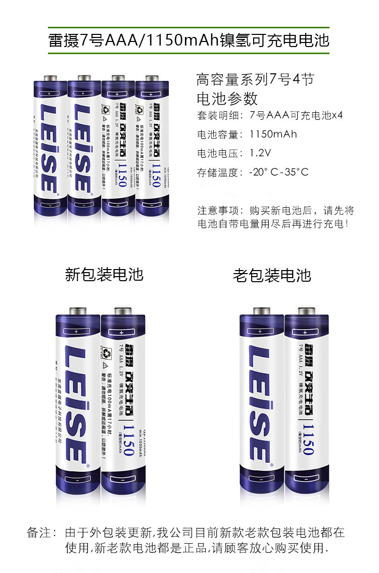 雷摄(LEISE)高容量镍氢充电电池 7号/七号/AAA/1150毫安(4节)电池盒装 适用:玩具/鼠标/遥控器(不含充电器) 白色 白色
