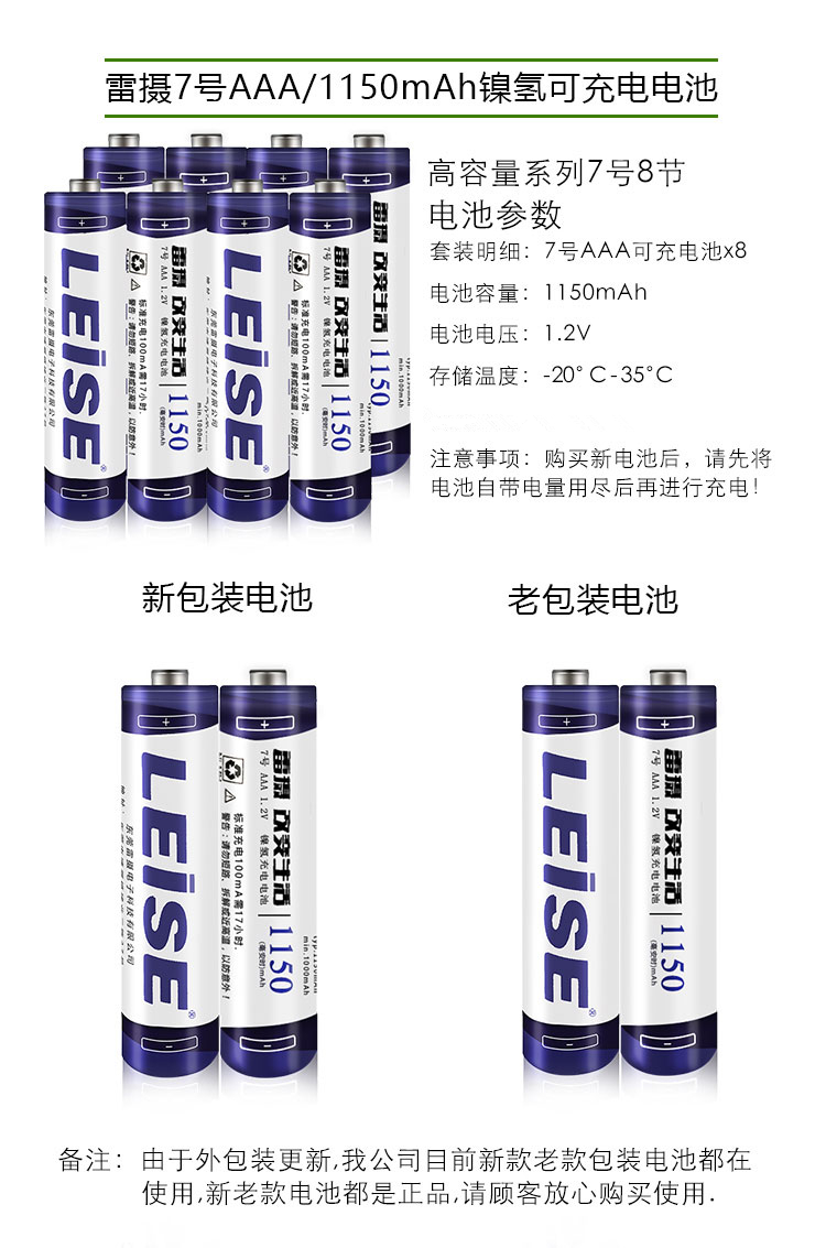 雷摄(LEISE)高容量镍氢充电电池 7号/七号/1150毫安(8节)电池盒装 适用:玩具/鼠标/遥控器(不含充电器) 白色 白色