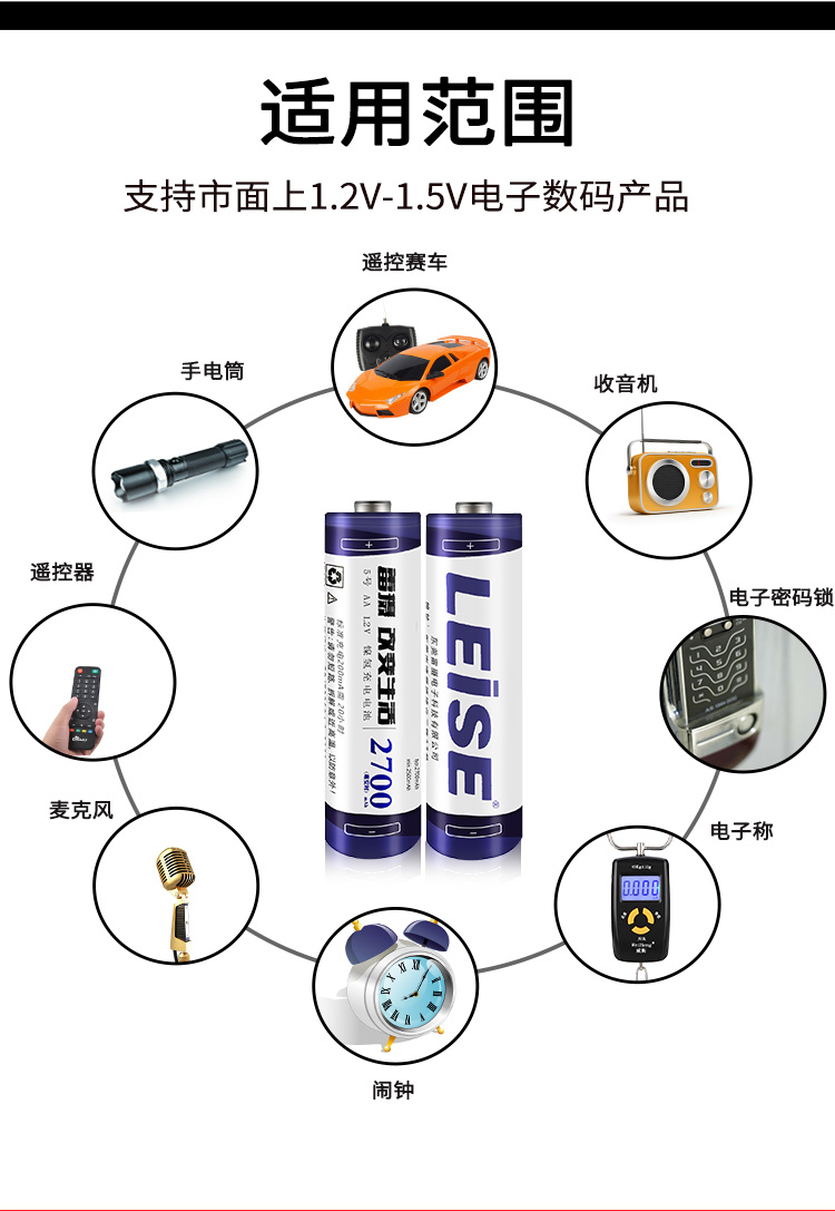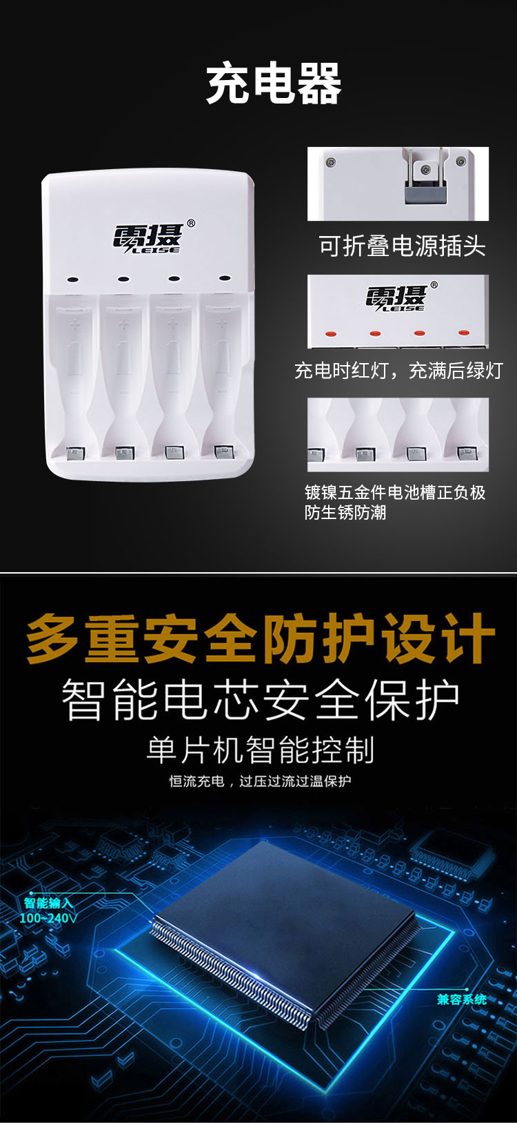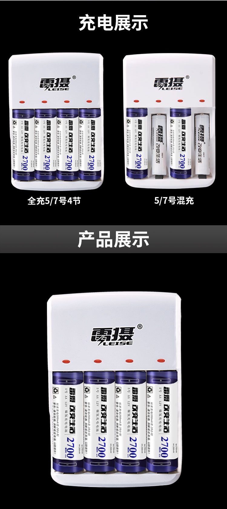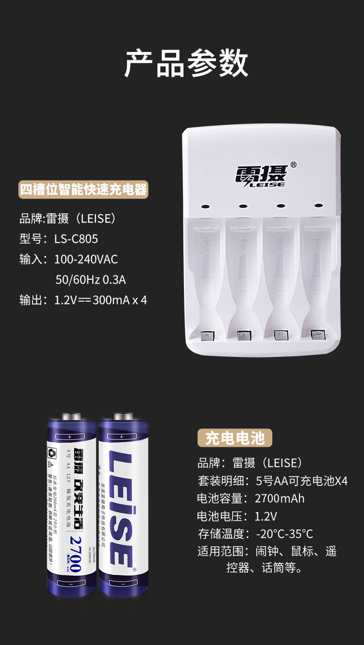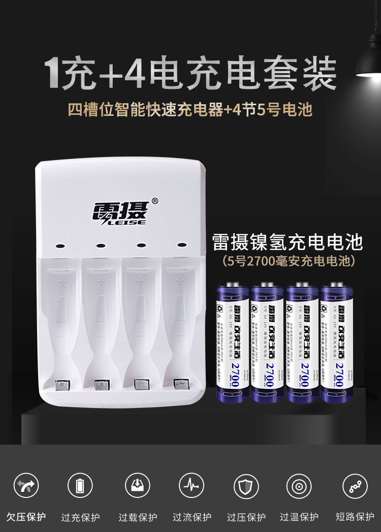雷摄(LEISE) 805智能快速充电器套装(配4节5号AA2700毫安充电电池+4槽充电器) 适用:KTV麦克风/玩具/相机 套 白色 白色