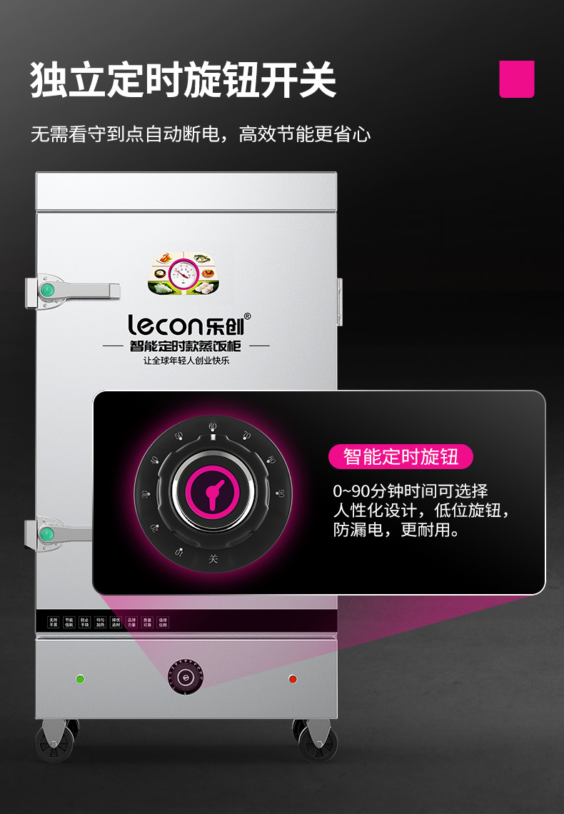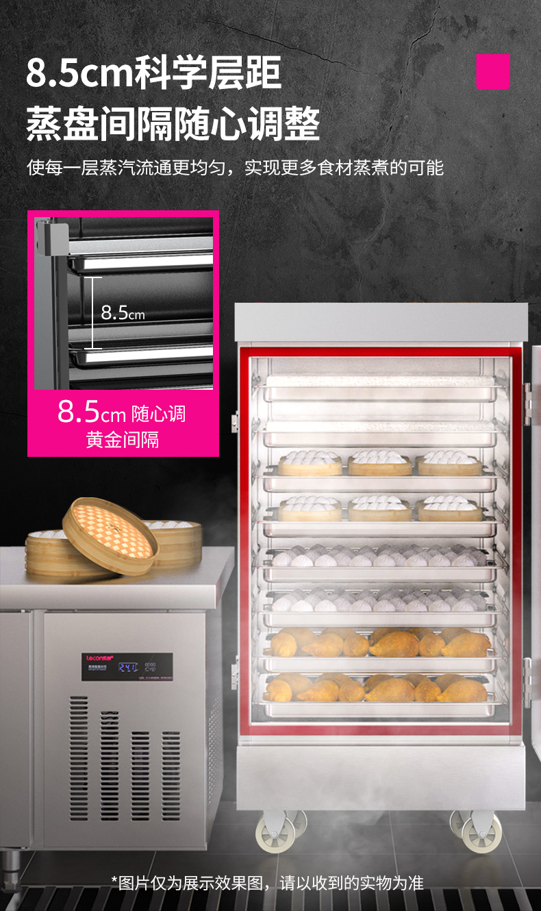 乐创(lecon)商用蒸饭柜 学校企业酒店食堂单门蒸箱蒸包炉馒头炉 8盘定时款 LC-J-ZFD08 不锈钢色