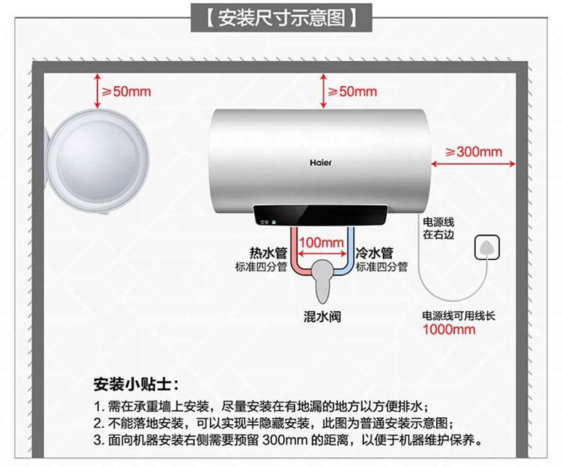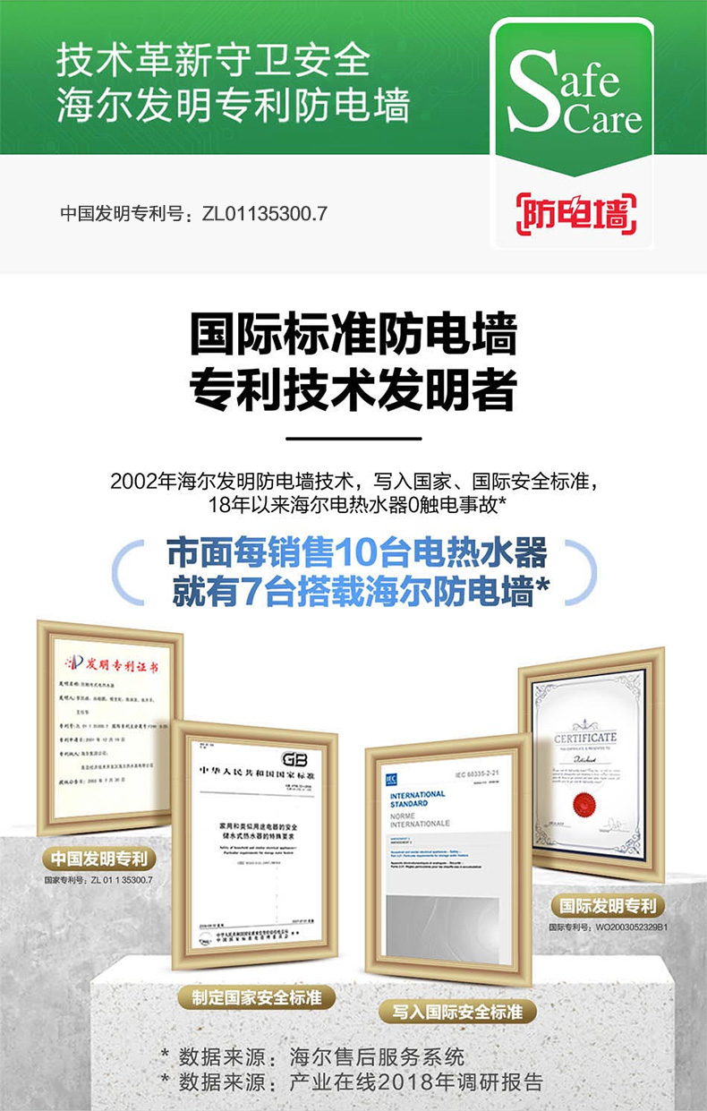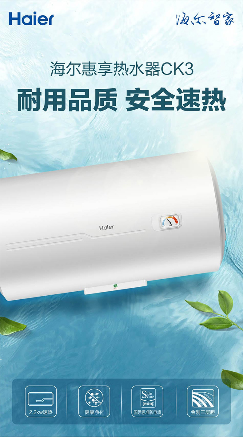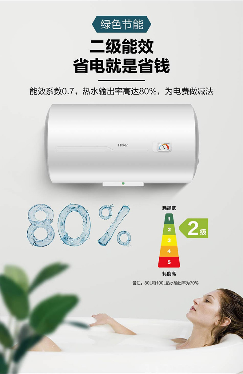 海尔(Haier) 热水器 ES80H-CK3(1) 80L 防电墙横式 二级能效 台 白色