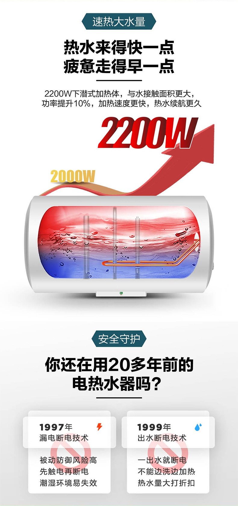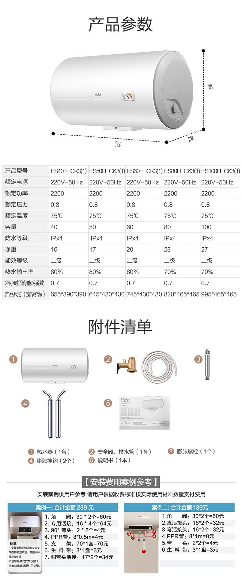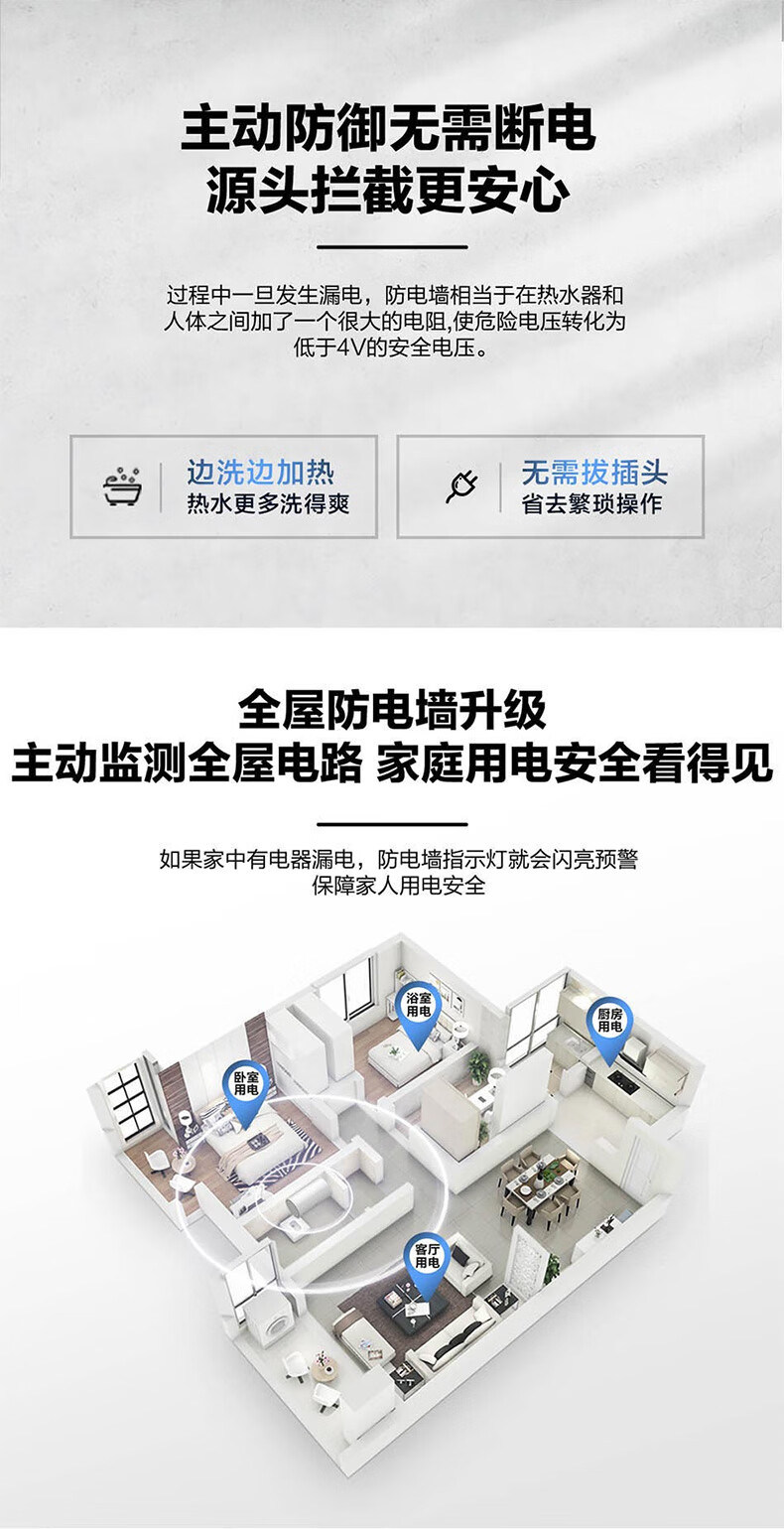 海尔(Haier) 热水器 ES80H-CK3(1) 80L 防电墙横式 二级能效 台 白色