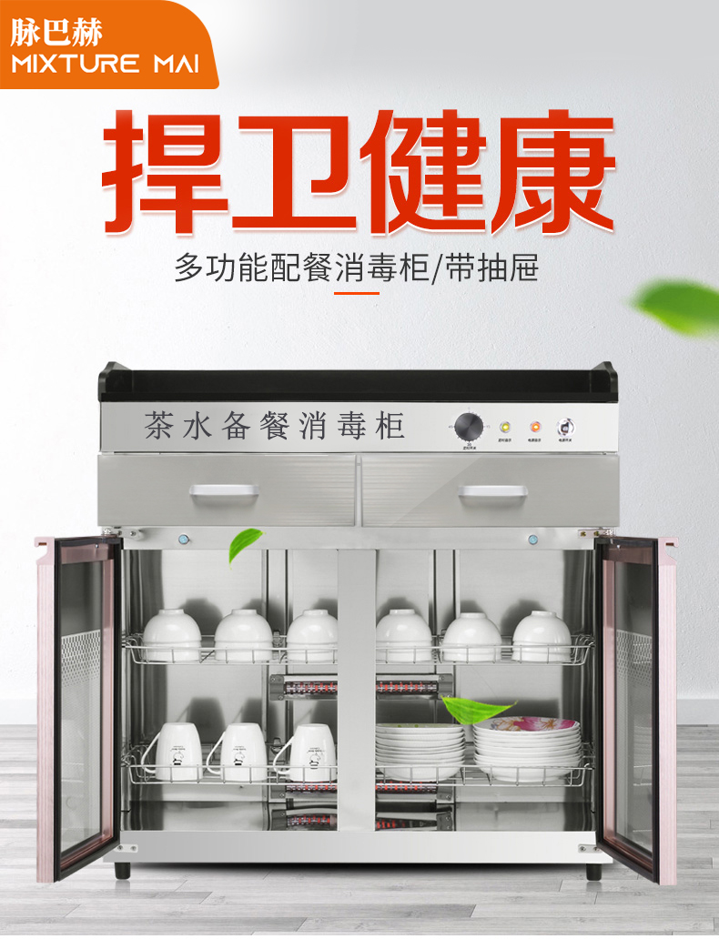脉巴赫 茶水消毒柜 MBH-ZHXDG-C 立式备餐柜 大理石台面双门大容量食具配餐柜 酒店饭店备餐茶水柜 MBH-CSG1200 银白