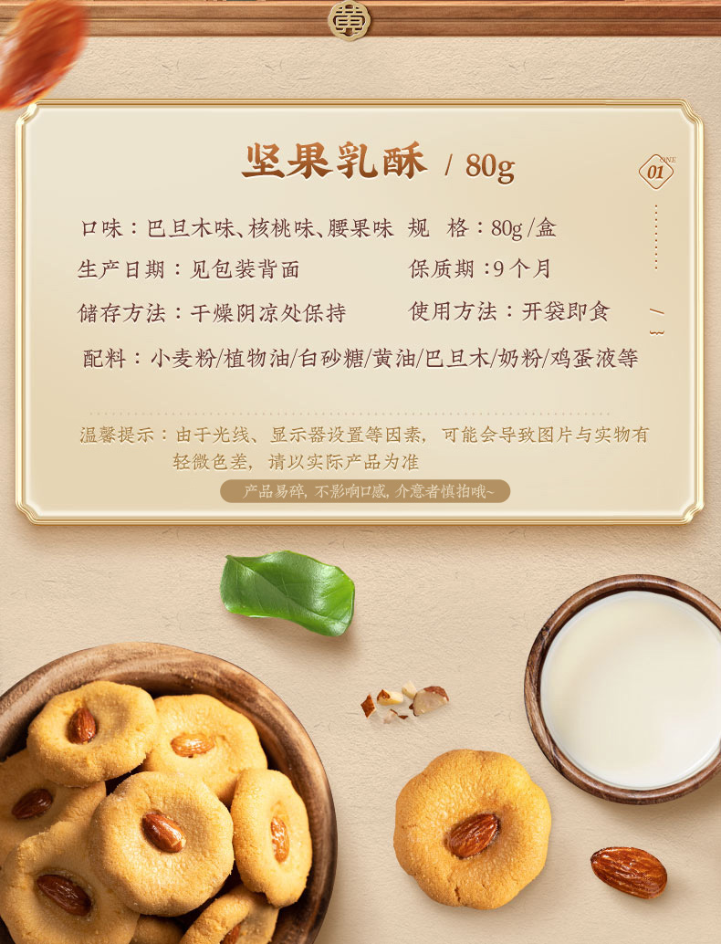 黄老五 核桃坚果乳酥小奶酥曲奇饼多种休闲办公室零食坚果乳 酥巴旦木味80g 白色 巴旦木味