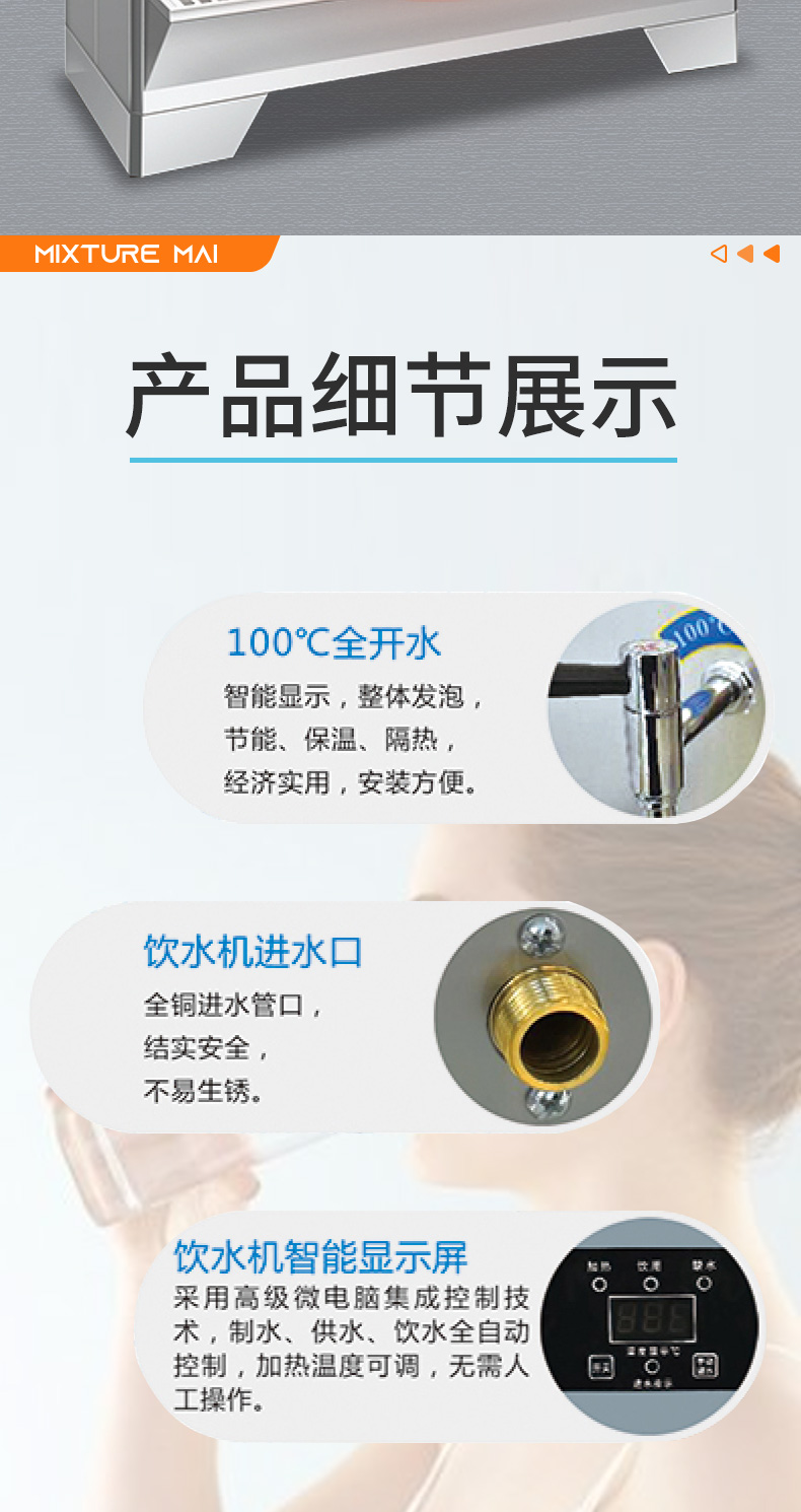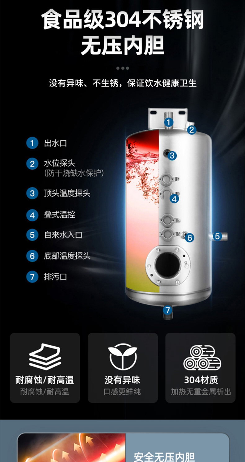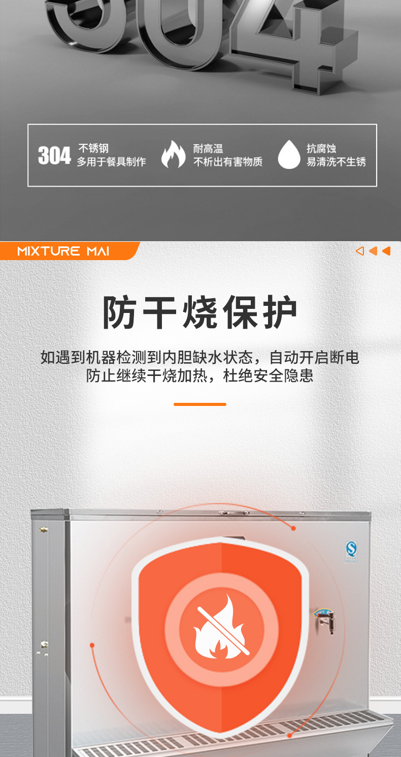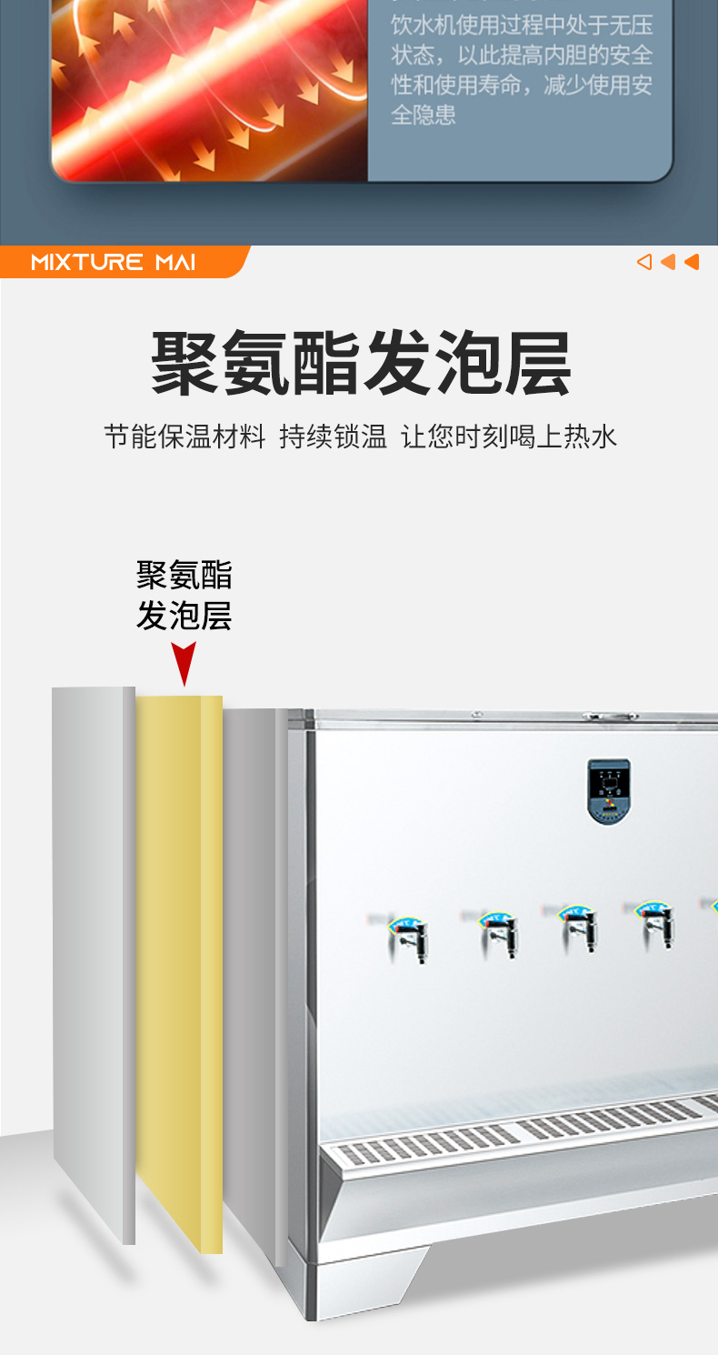 脉巴赫 商用300L大容量卧式开水器 五龙头不锈钢电热开水器 BMBH-WSKSQ5-300 不锈钢色