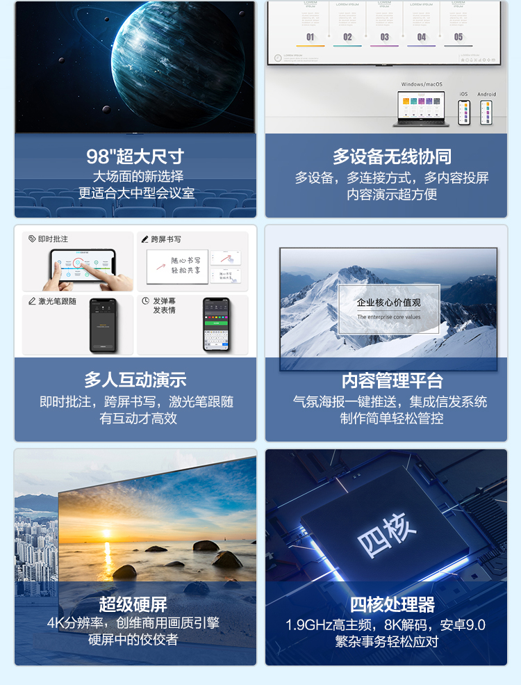 创维(Skyworth)KT98B02A 商用会议平板巨幕 4K超高清HDR支持投屏企业用商用显示智慧屏 黑色
