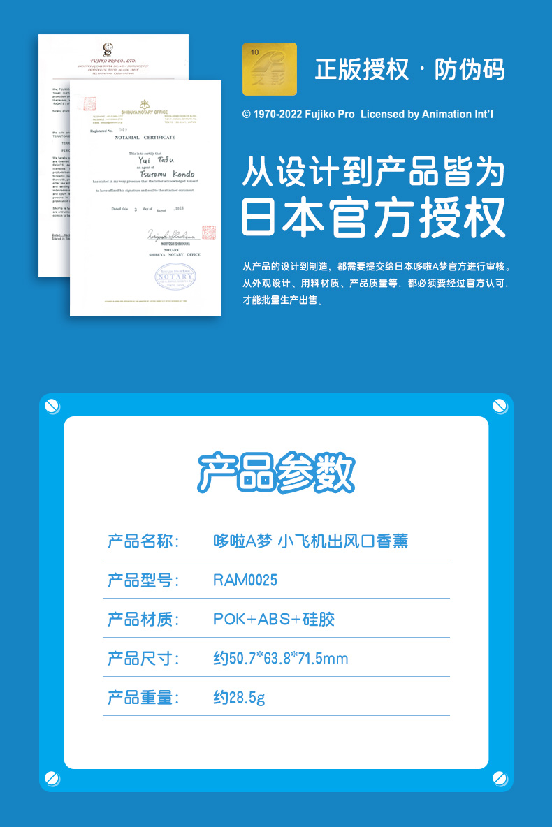 壹到拾(one2ten)哆啦A梦 小飞机车载出风口香薰 RAM0025(单位:个)蓝色 蓝色