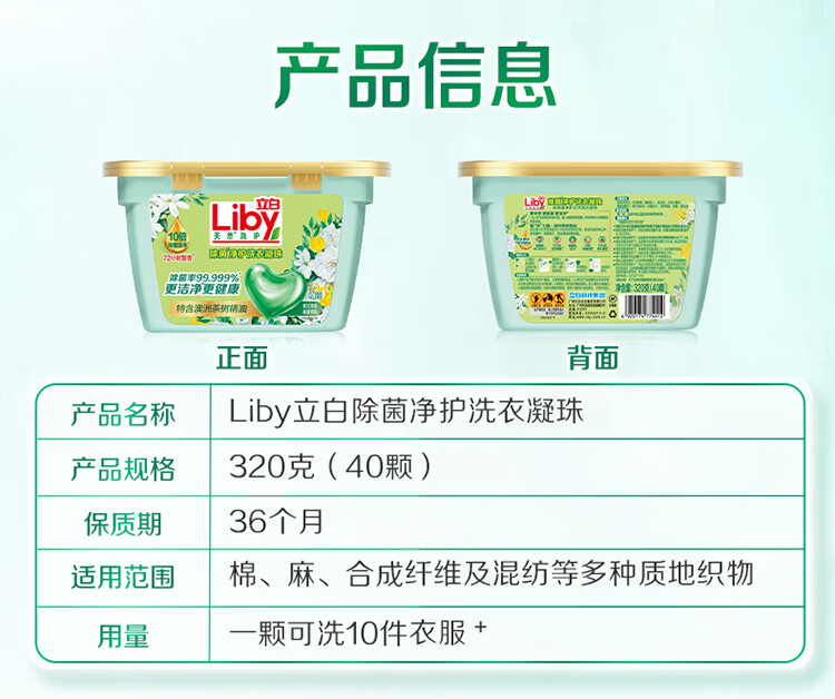 立白除菌净护香氛洗衣凝珠320克(40颗)(单位:盒) 绿色