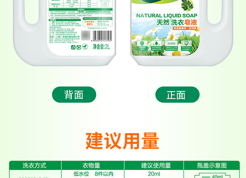 天然洗衣皂液2L 松石绿
