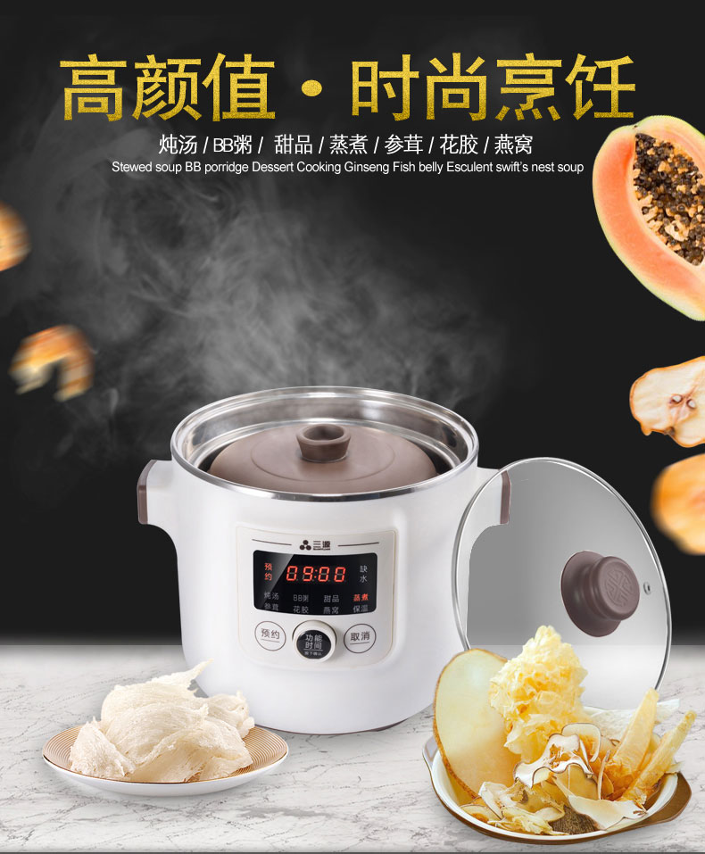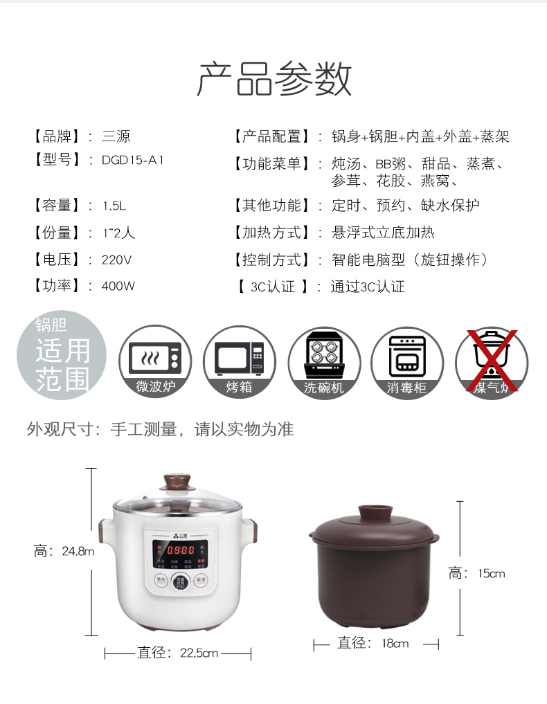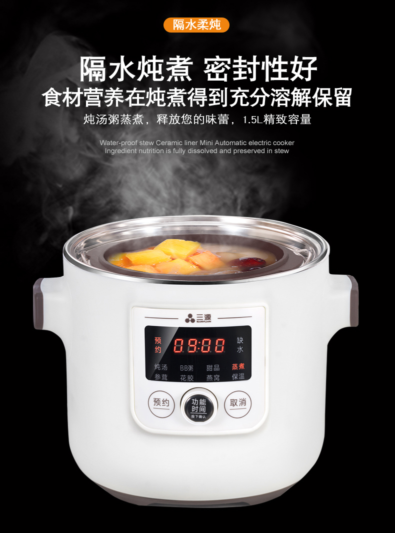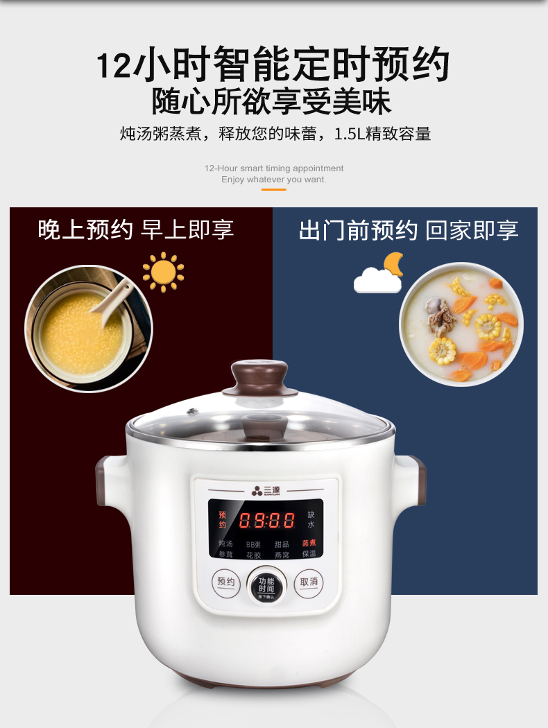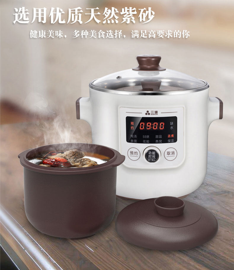 三源(SANYUAN) 电紫砂隔水炖锅DGD15-A1电炖锅紫砂锅煲1.5L汤锅手拧机械煲粥炖汤直炖小大容量 米白色