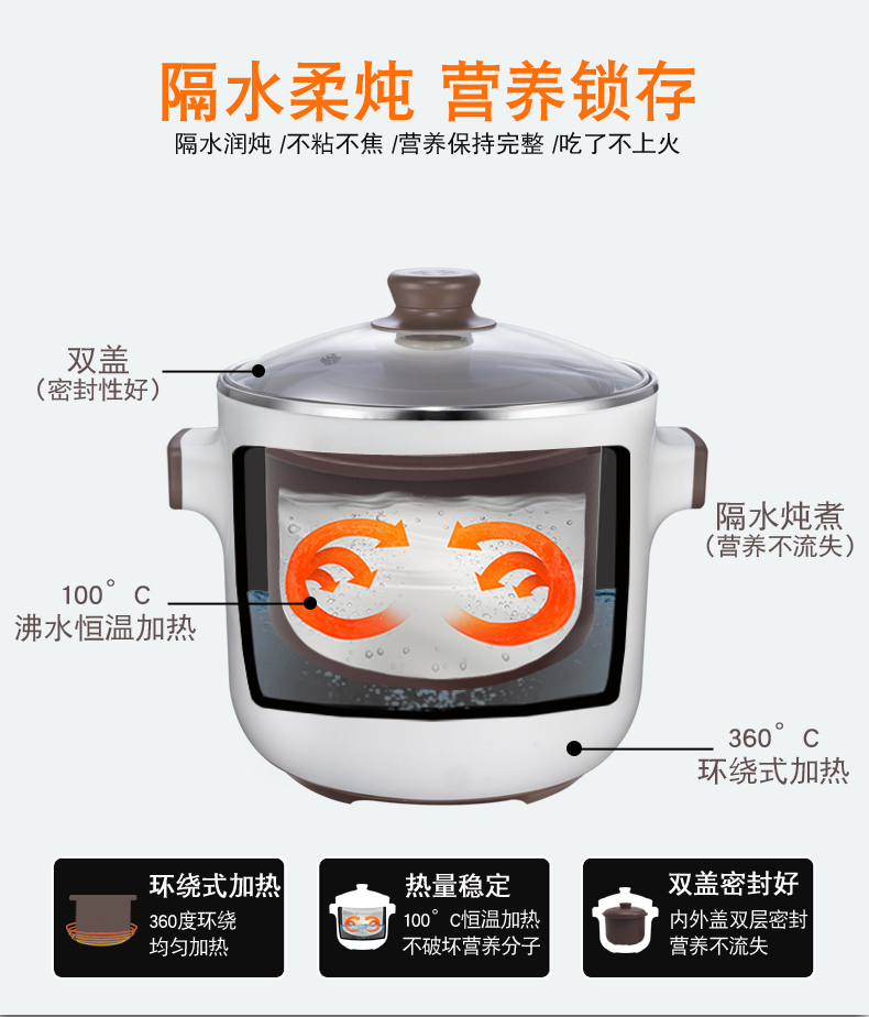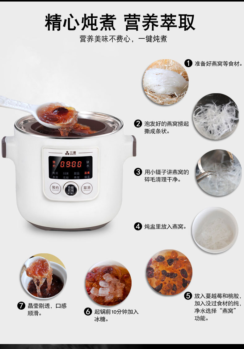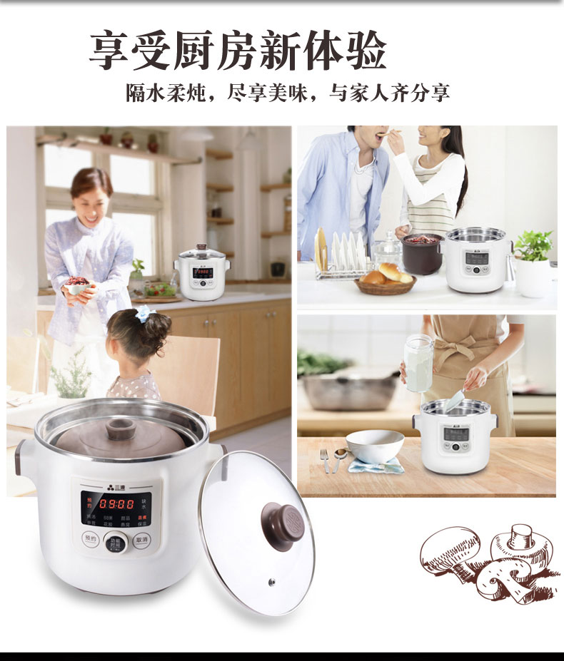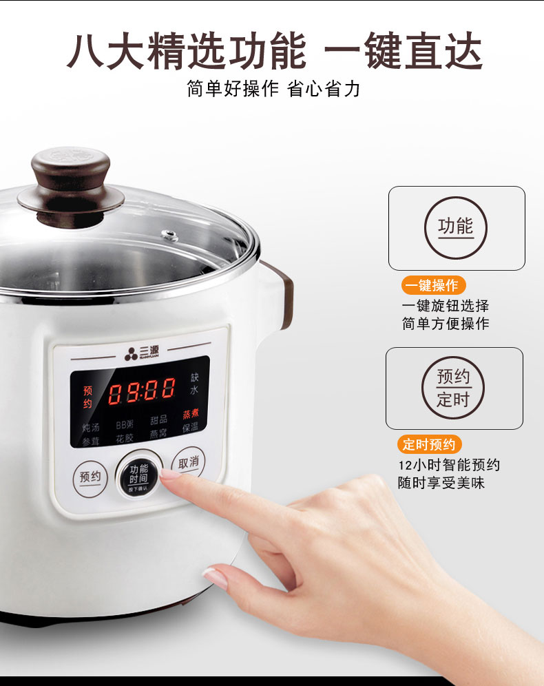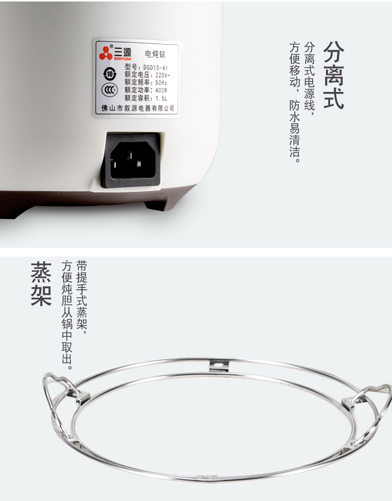 三源(SANYUAN) 电紫砂隔水炖锅DGD15-A1电炖锅紫砂锅煲1.5L汤锅手拧机械煲粥炖汤直炖小大容量 米白色