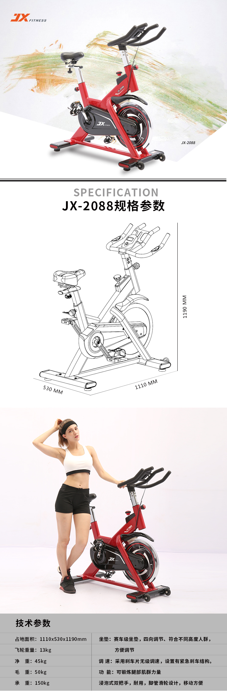 军霞(JUNXIA)JX-2088 动感单车 黑色