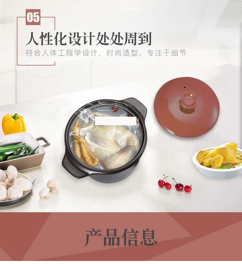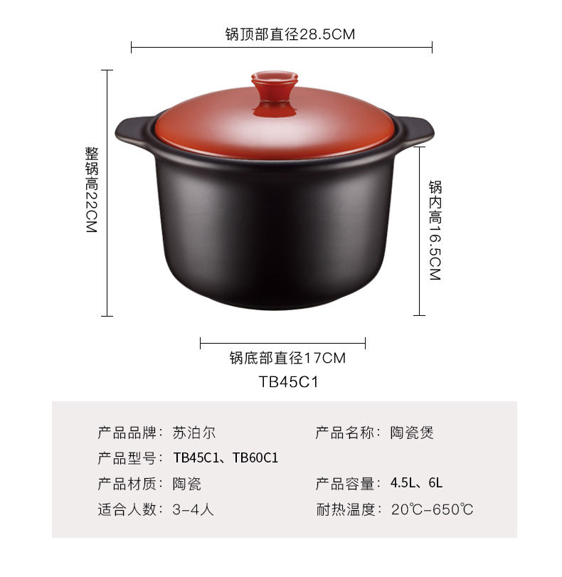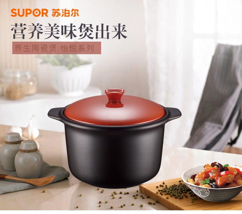 苏泊尔(SUPOR)新陶养生煲怡悦深汤陶瓷煲6.0L砂锅TB60C1(新款包装)起订量300个 黑色