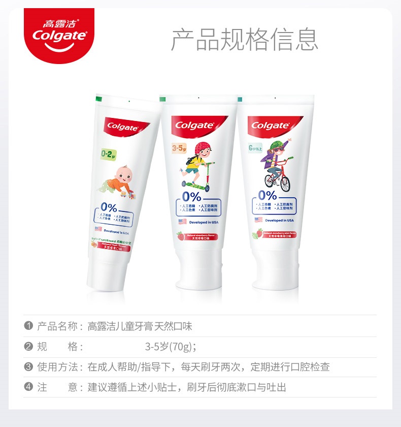 高露洁儿童牙膏天然口味70g 支 白色