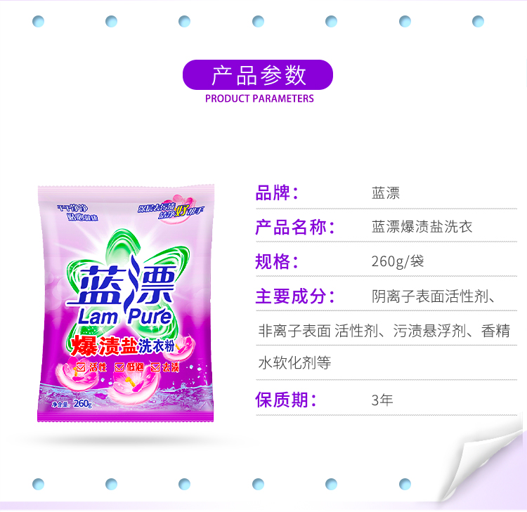蓝漂 爆渍盐洗衣粉260g*5袋装 LP-361763洗衣粉5袋