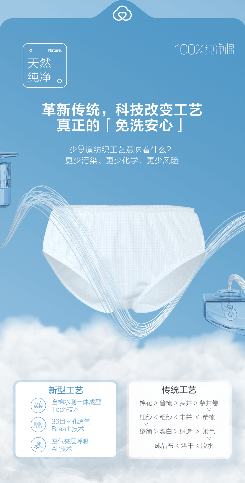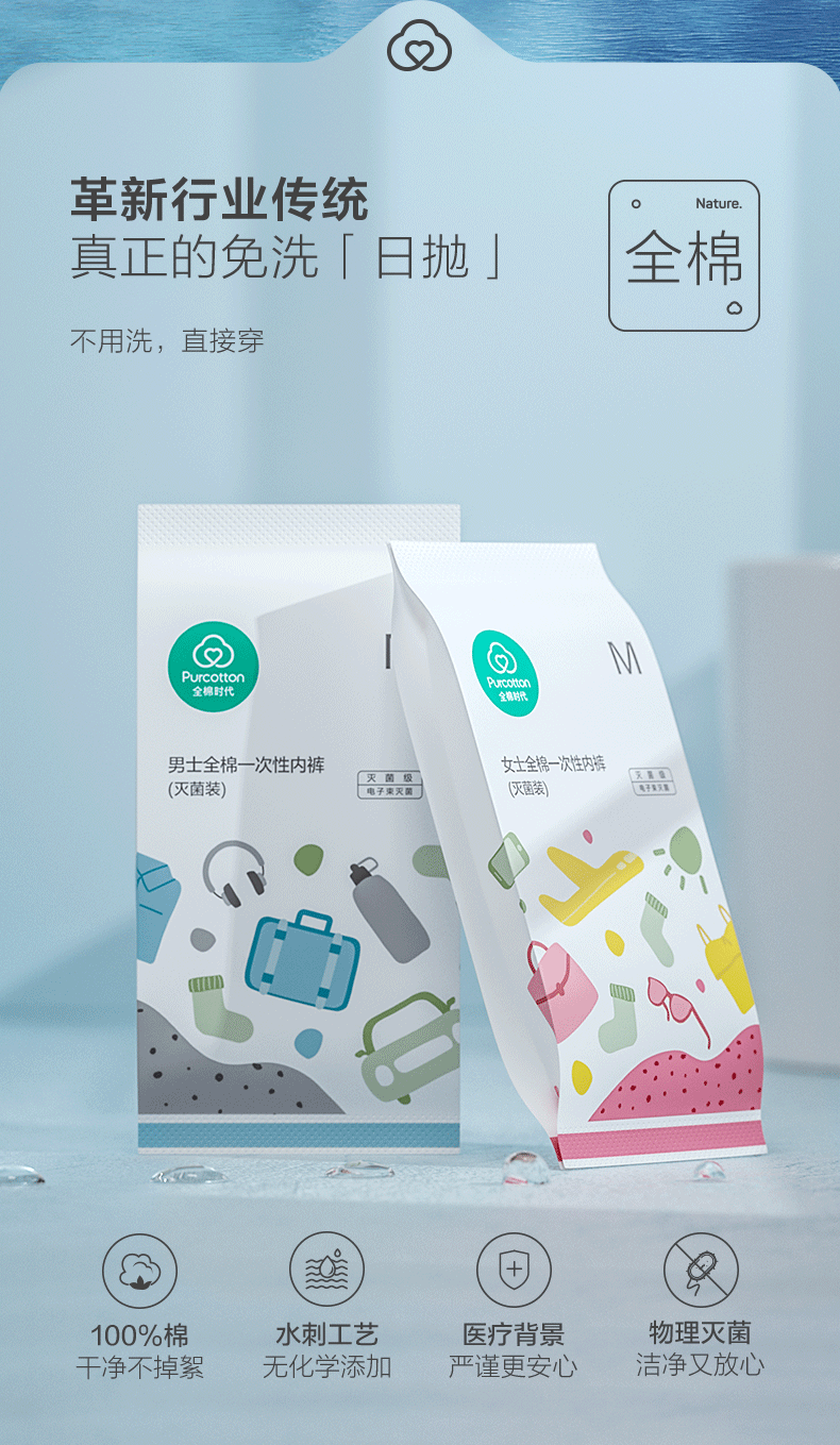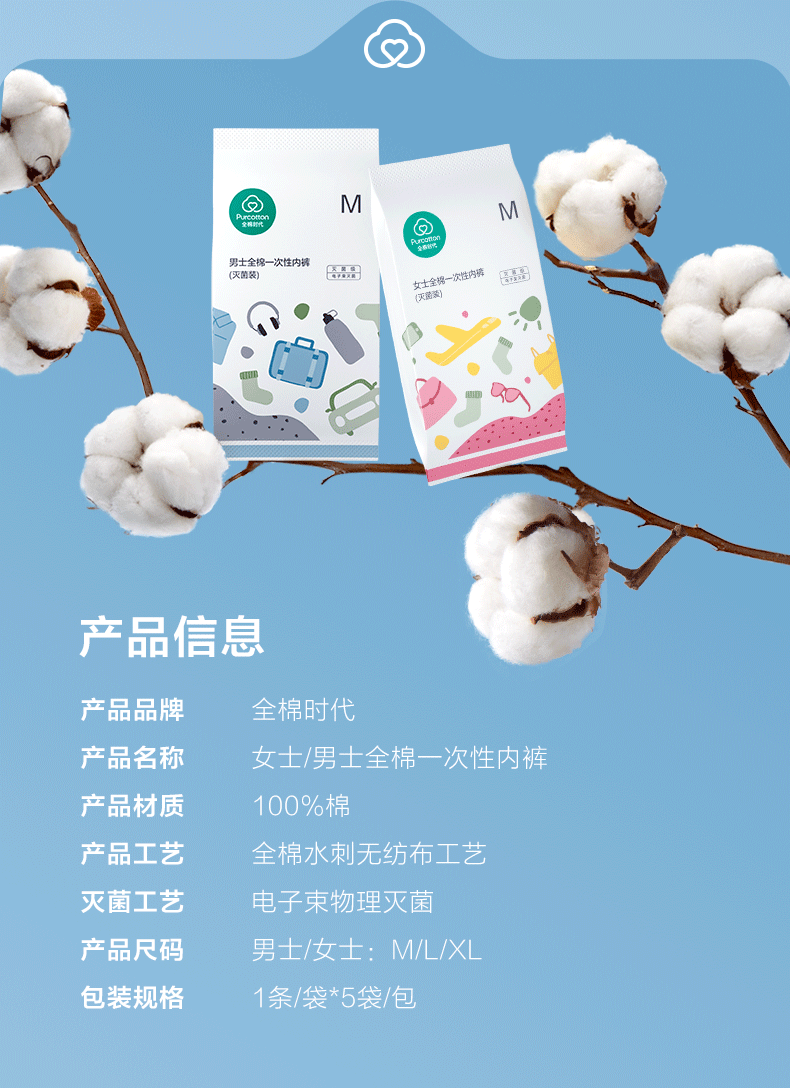 全棉时代男士全棉一次性内裤(灭菌装)36目 纸纸袋XL 5条/包(单位:包) 混色