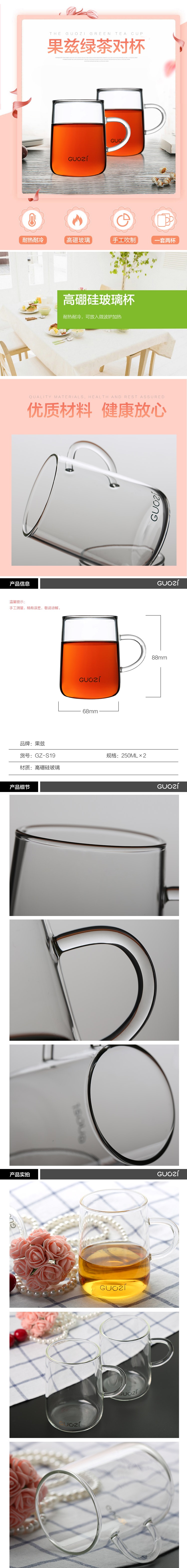 果兹(GUOZI)绿茶对杯GZ-S19 250ml*2(单位:组) 透明色