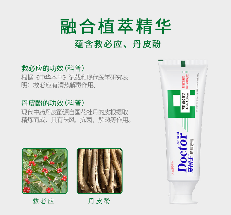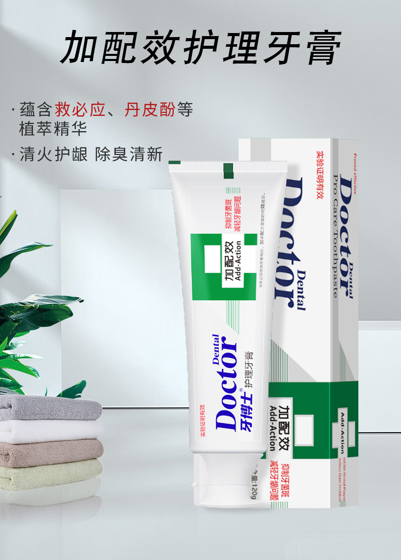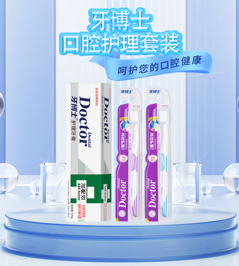 牙博士 牙龈护理,清新口气 加配效护理 120g 120g*1+牙刷*2 白色(单位:组)