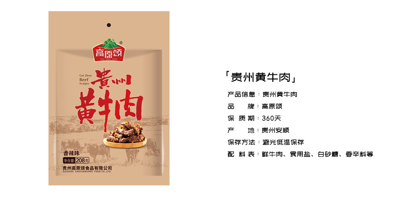 高原颂贵州黄牛肉(香辣)208g(单位:袋) 莓果色