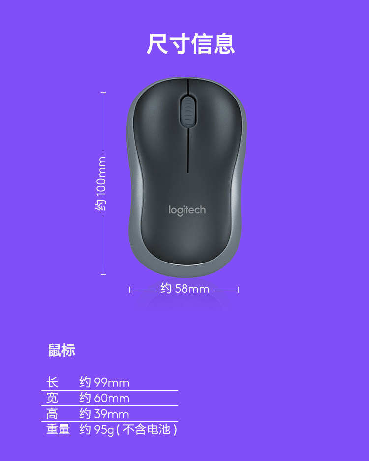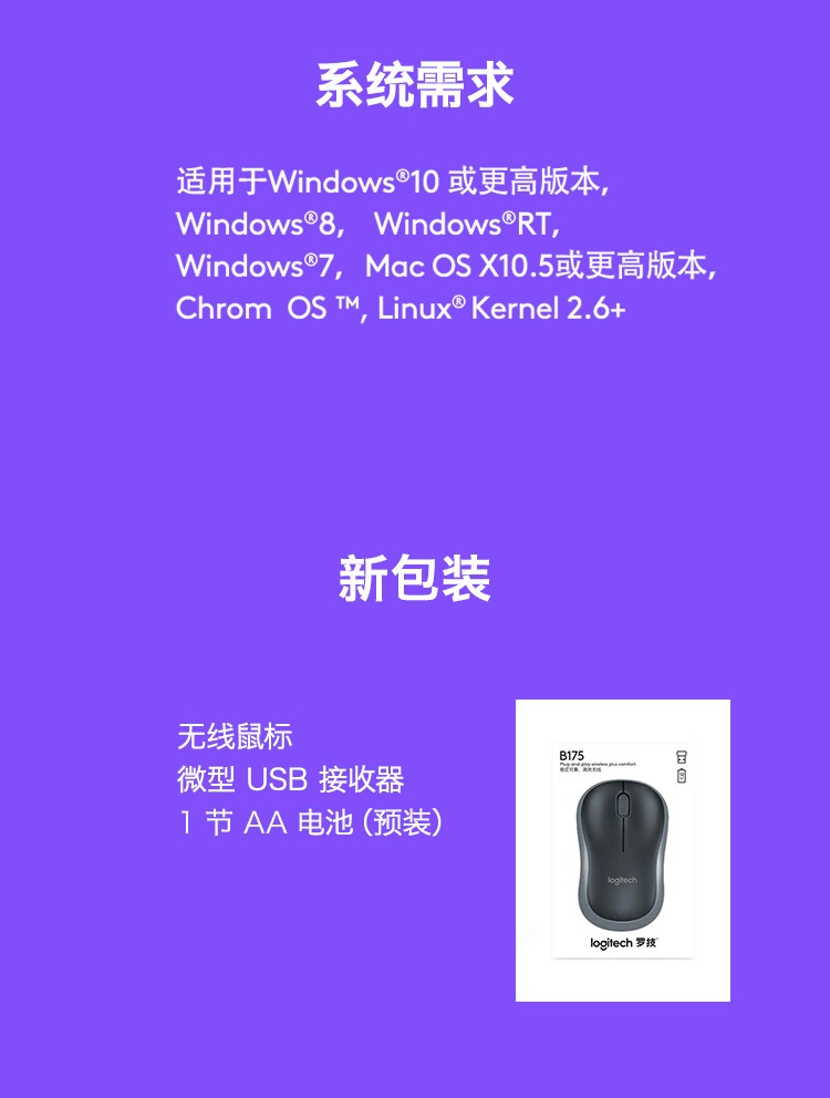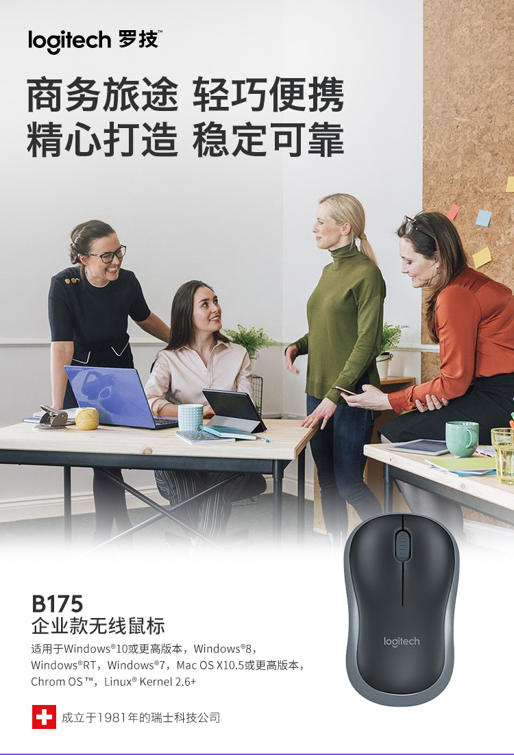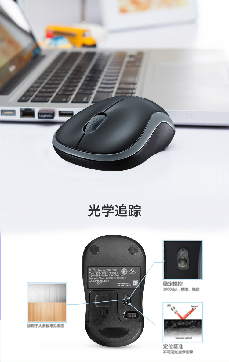 罗技(Logitech)B175企业版 鼠标 无线鼠标 办公鼠标 对称鼠标 黑色 曜石黑