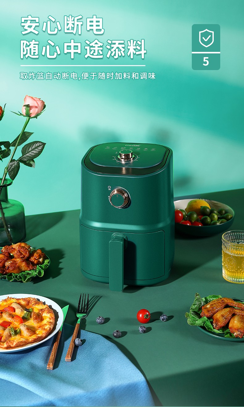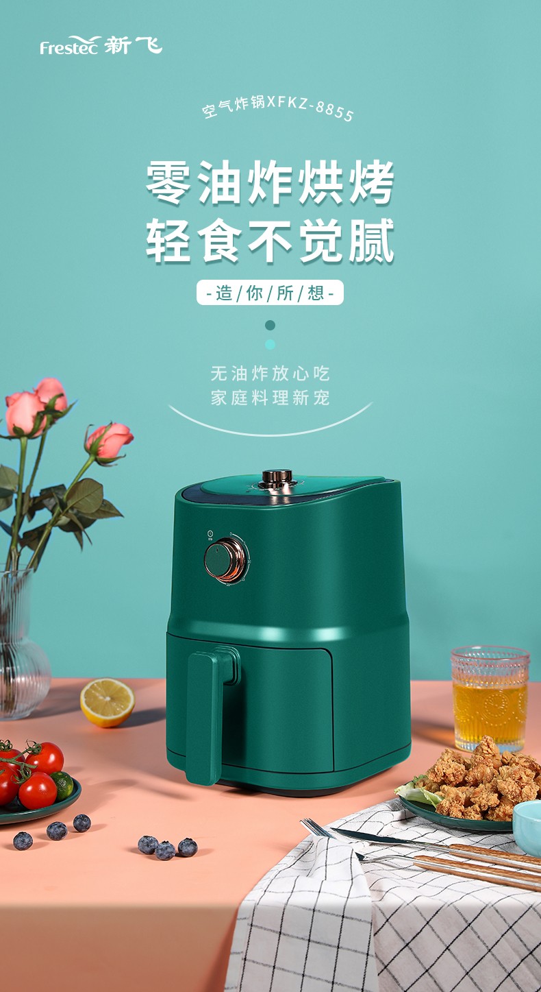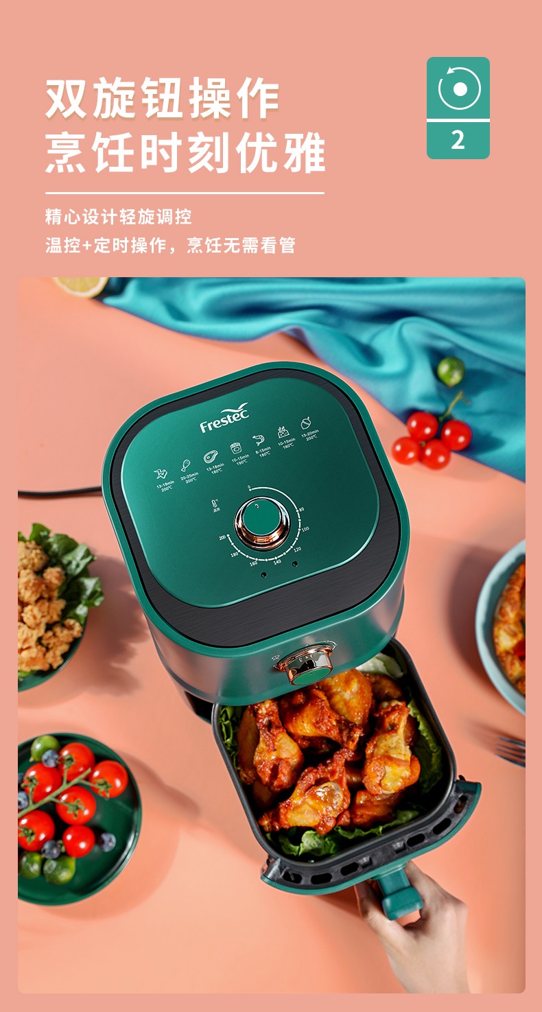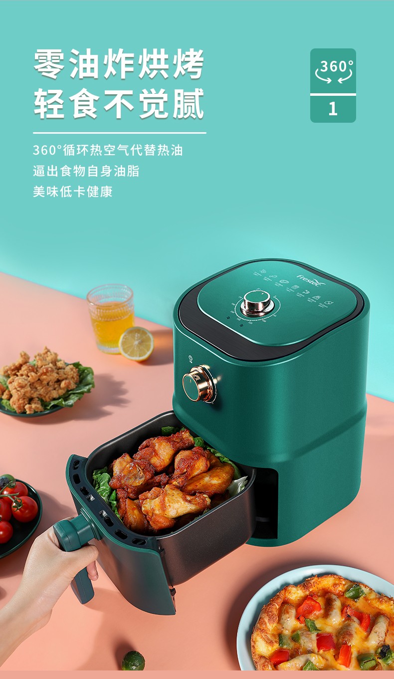 新飞(Frestec) 空气炸锅双旋钮家用多功能无油烟电炸锅3L容量FTKZ-R1611(单位:个) 绿色
