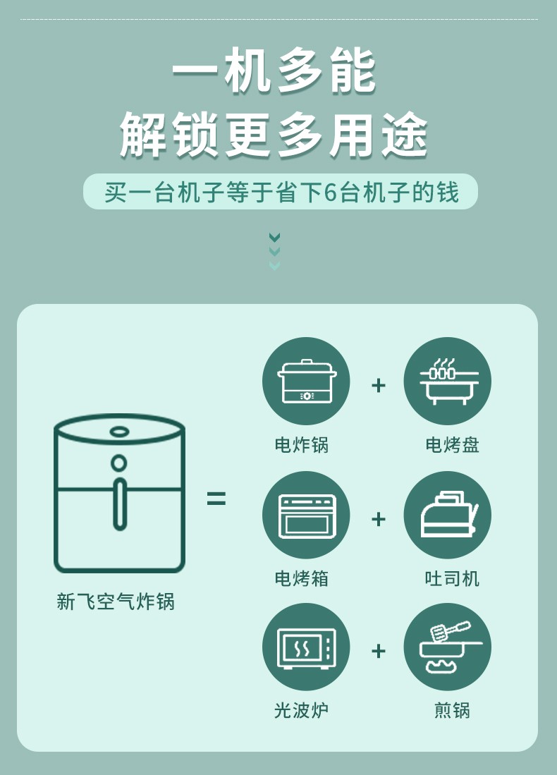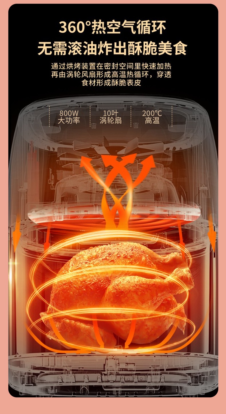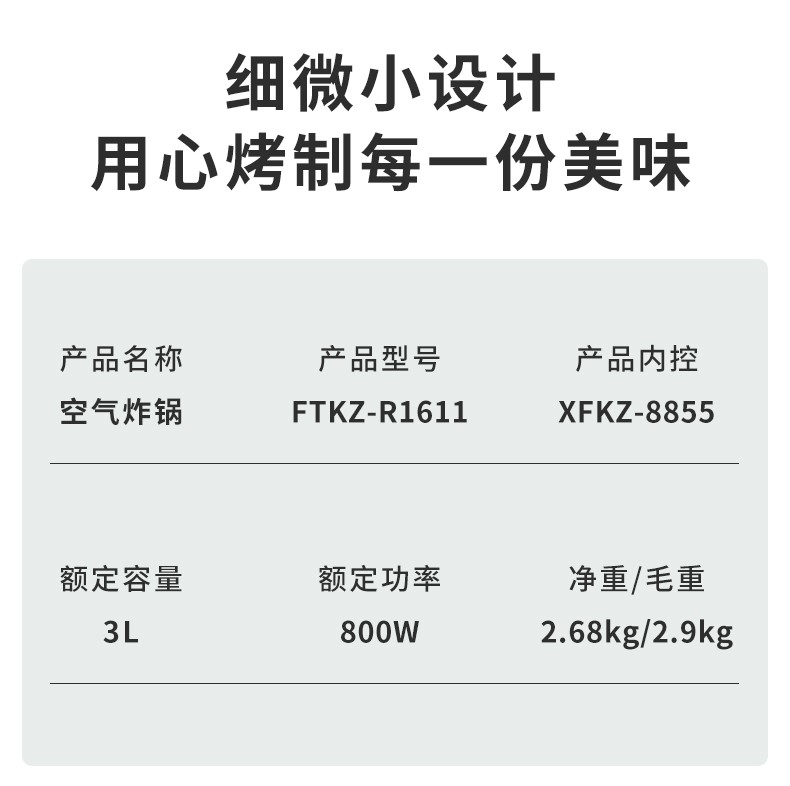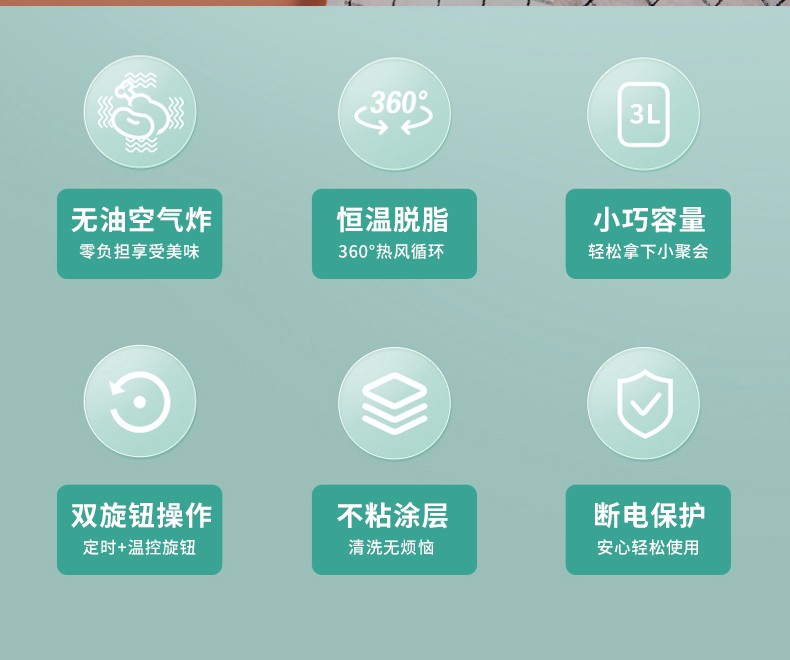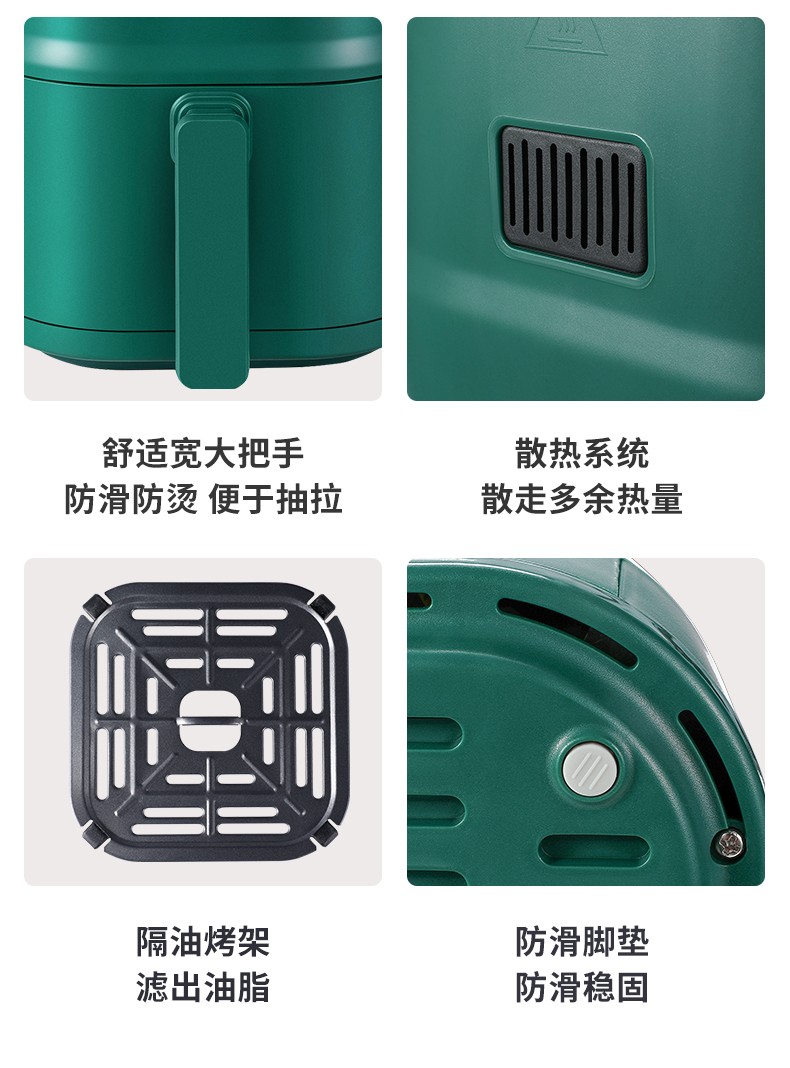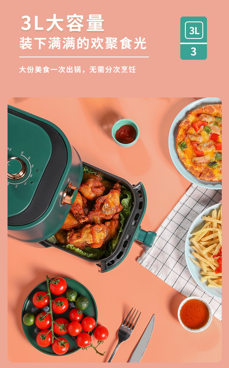 新飞(Frestec) 空气炸锅双旋钮家用多功能无油烟电炸锅3L容量FTKZ-R1611(单位:个) 绿色