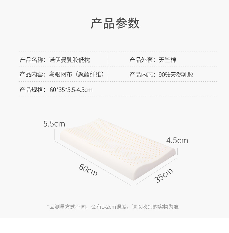 诺伊曼 noyoke 乳胶护颈超低枕60*35*5.5cm枕芯 S9066 灰色